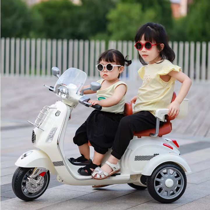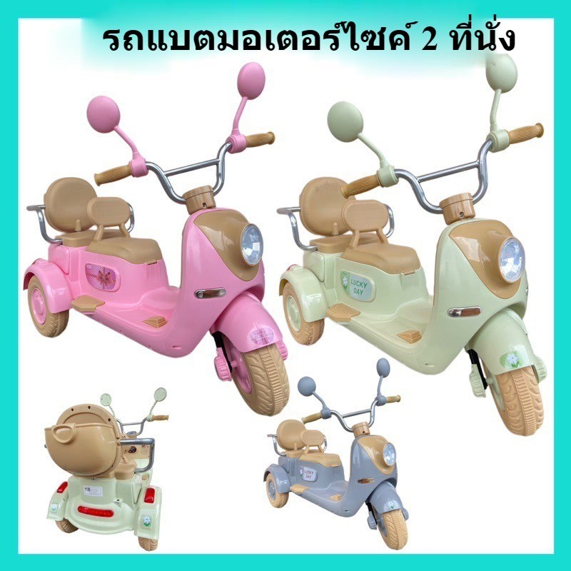 มอเตอร์ไซค์ไฟฟ้าสำหรับเด็ก สไตล์คลาสสิกแบบสองที่นั่ง (Double Seat)มีสินค้าในสต็อกพร้อมส่ง ไม่ต้องรอคอยนาน
