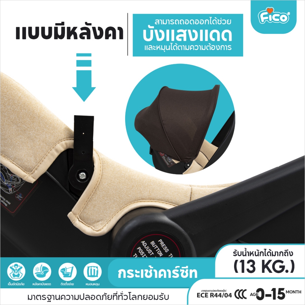 Fico คาร์ซีทกระเช้าสำหรับเด็กแรกเกิด ถึงอายุ 15 เดือน ที่มีน้ำหนักตัวไม่เกิน 13 kg.
