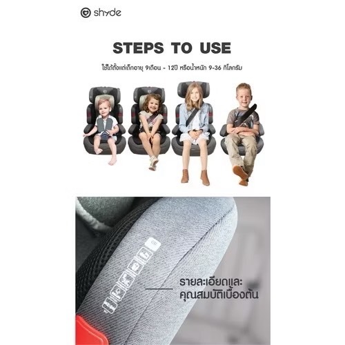 Camera คาร์ซีท รุ่น SHYDE2 เพิ่มผ้าหุ้มที่สายเบลท์ สำหรับเด็กอายุ 9 เดือนขึ้นไป – อายุ 12ปี