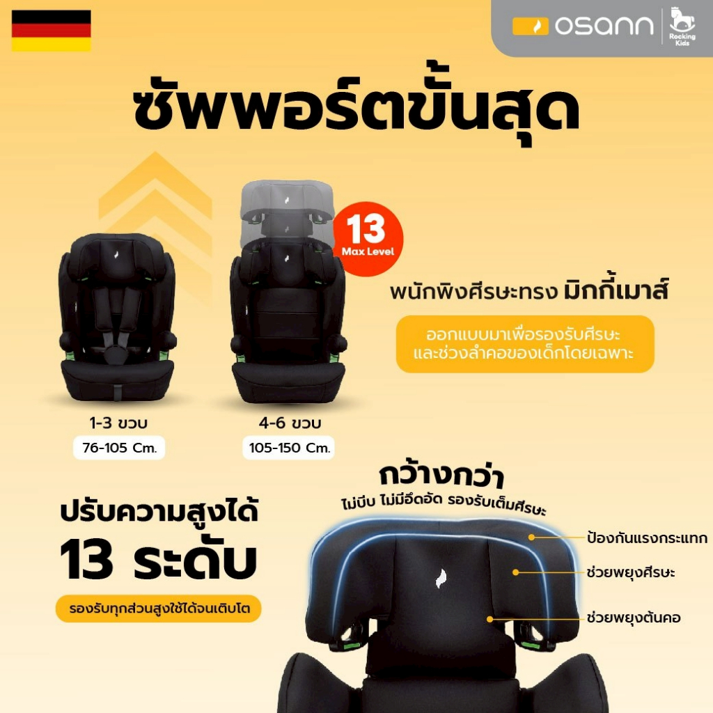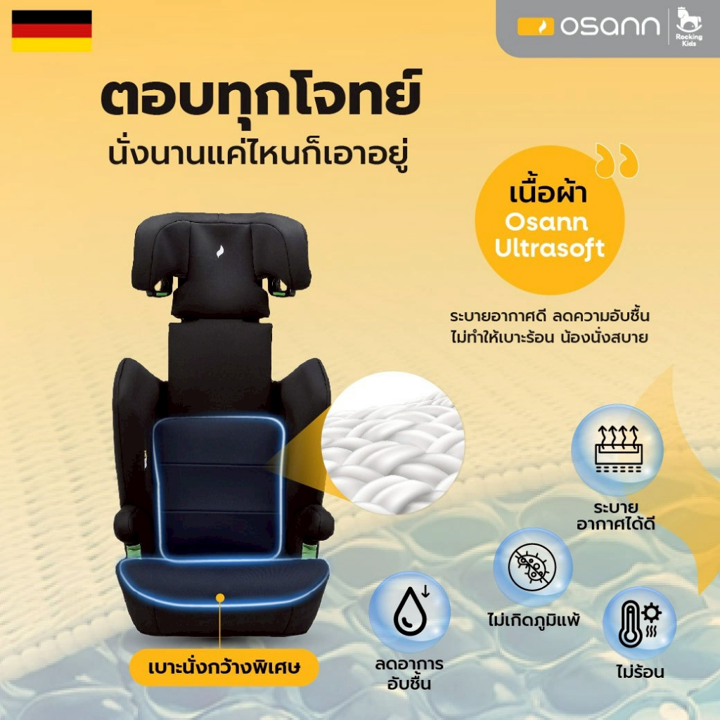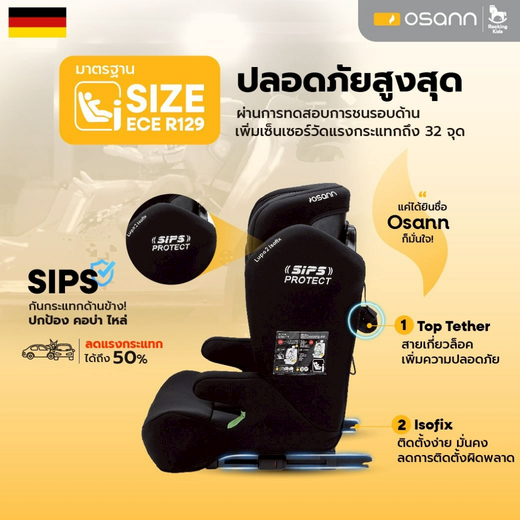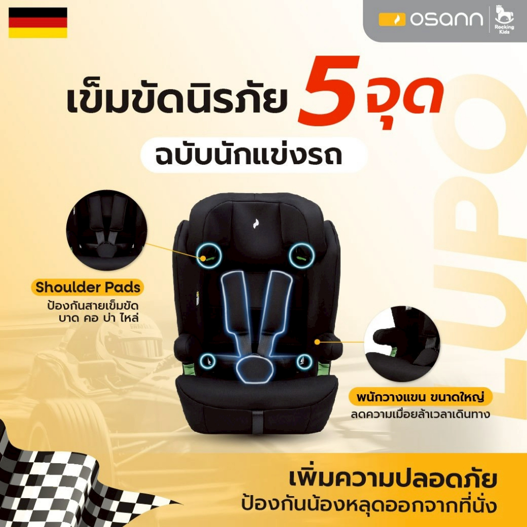 คาร์ซีทเด็กโต Osann รุ่น Lupo ISOFIX ป้องกันด้วยเข็มขัดนิรภัย ระดับนักแข่งรถ สำหรับ 15 เดือน -12 ขวบ