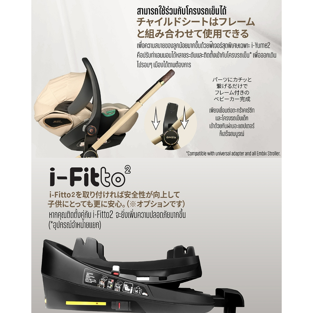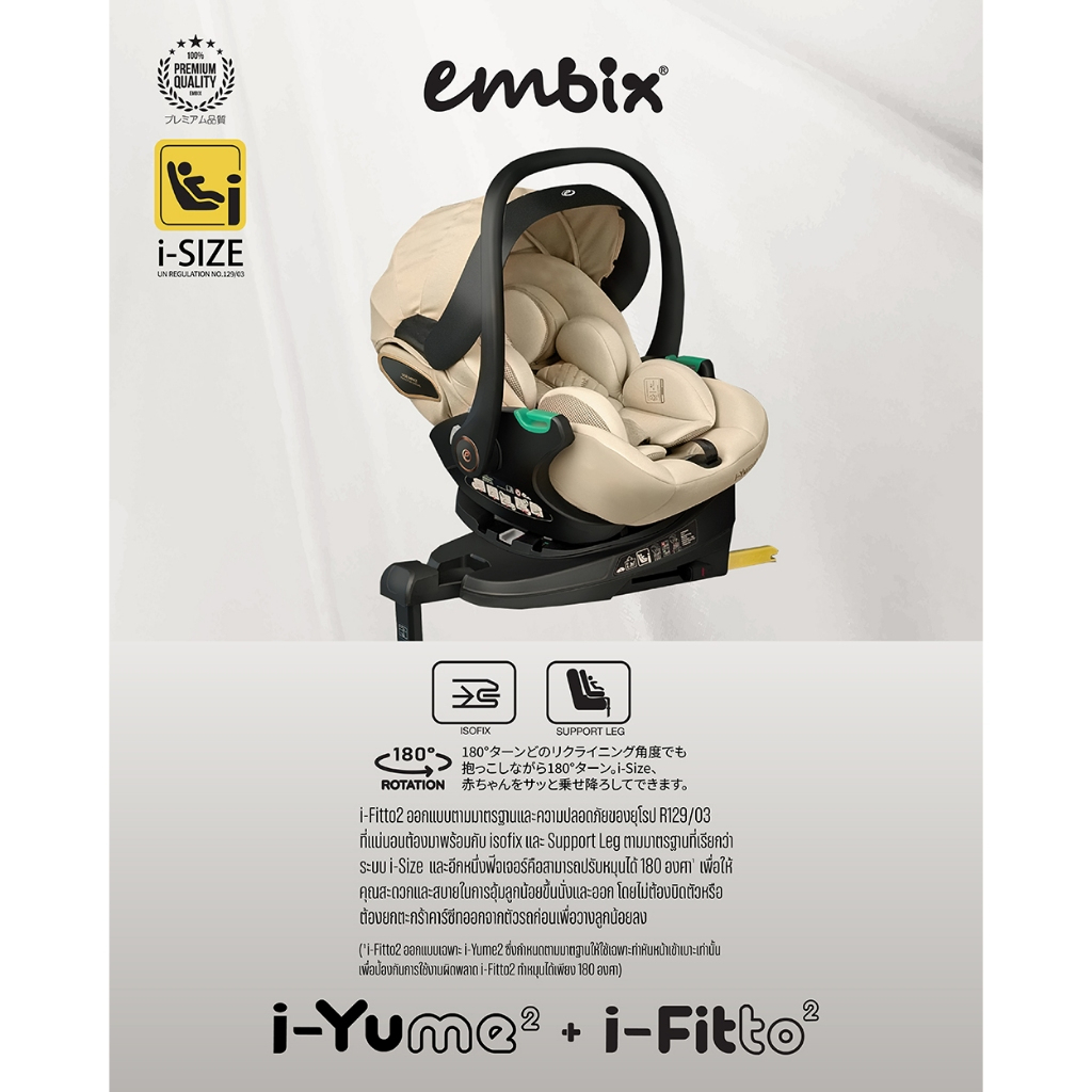 (ประกัน4ปี) Embix ตะกร้าคาร์ซีท i-YUME 2 และฐาน (base) i-FITTO 2 | ตะกร้าคาร์ซีทหิ้วสำหรับเด็กแรกเกิด