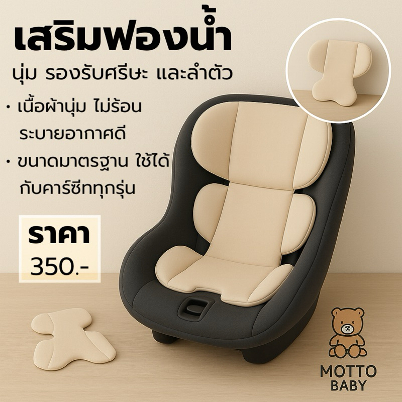 Beige คาร์ซีทเด็ก เบาะรถยนต์ PP เบาะผ้ายืด บุฟองน้ำ เข็มขัดนิรภัย5จุด นั่งนอนได้ เหมาะเด็ก0-10ขวบ