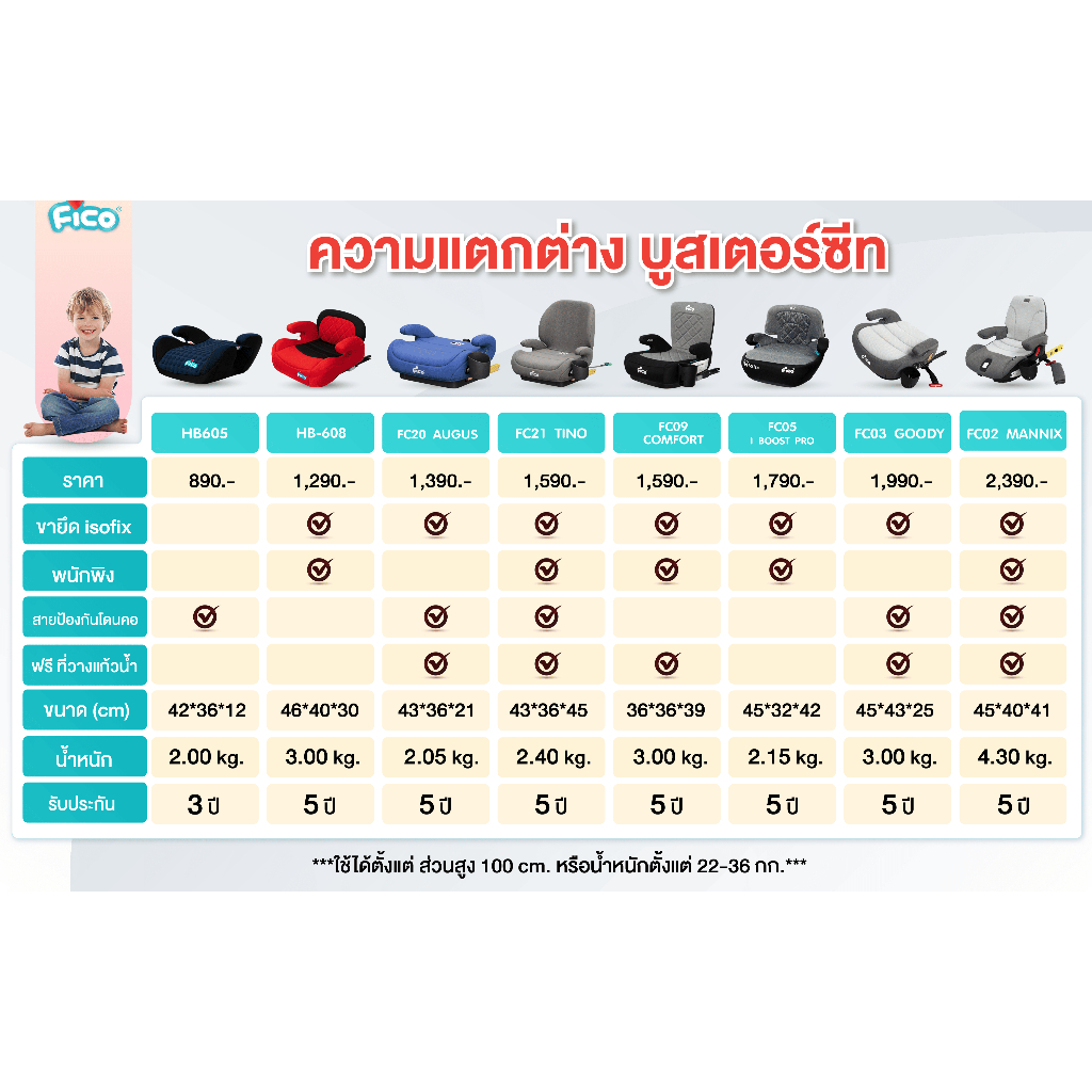 Fico คาร์ซีทเด็ก Booster Seat รุ่น Cozy kids (รวมรุ่นบูตเตอร์ซีท) เหมาะสำหรับตั้งแต่ 3 – 12 ขวบ (15-36 kg.)