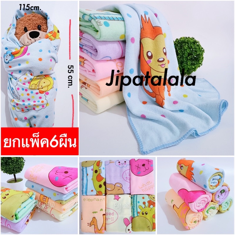 ผ้าเช็ดตัวเด็ก ห่อตัวเด็กทารก รุ่นสีอ่อนพลาสเทล แพ็ค6ผืน