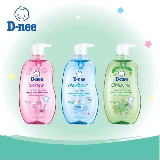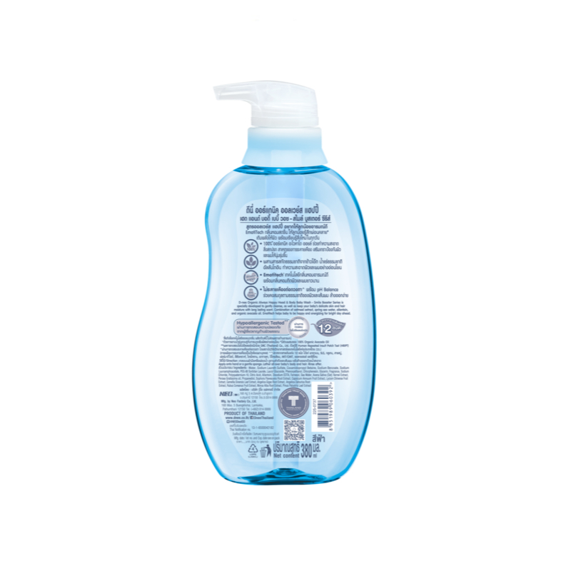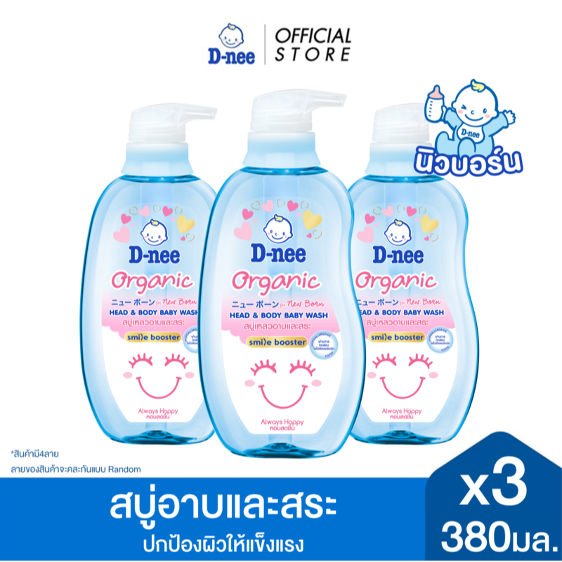 [แพ็ค3] D-nee ดีนี่ ออร์แกนิค สบู่เหลวอาบและสระ กลิ่นแฮปปี้ เบบี้ 380 มล. x3, สีฟ้า