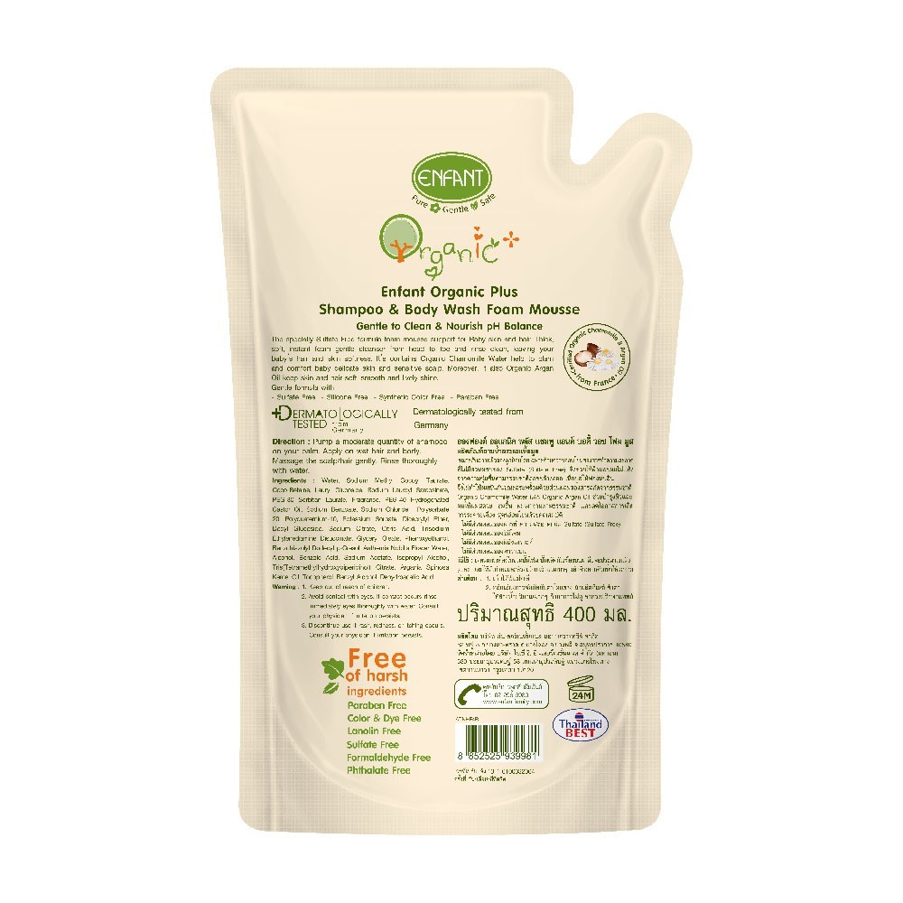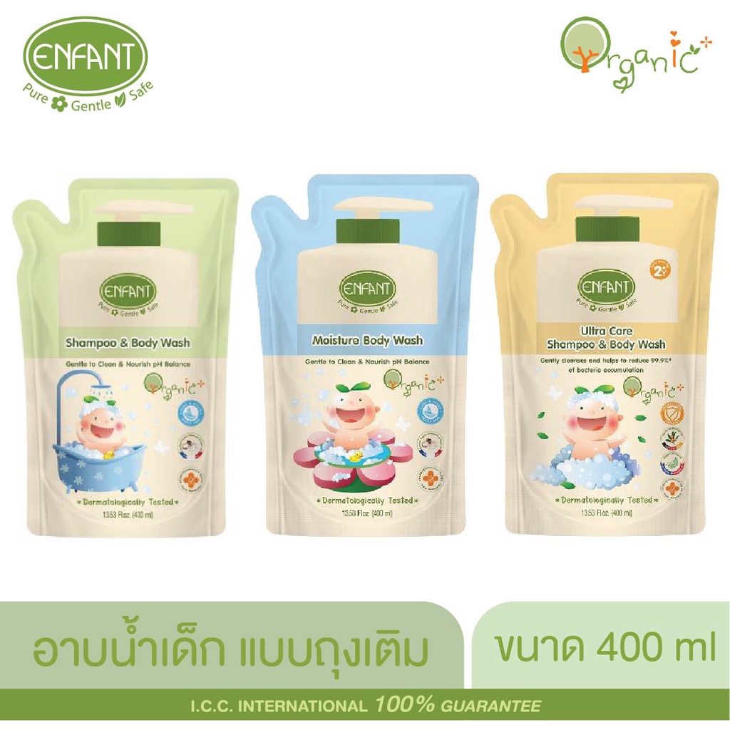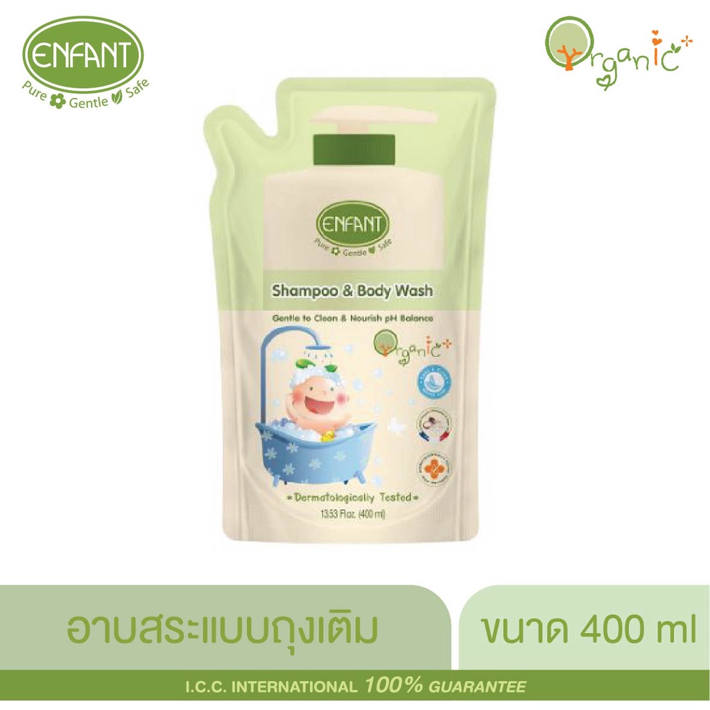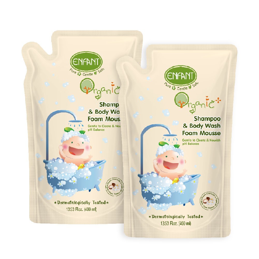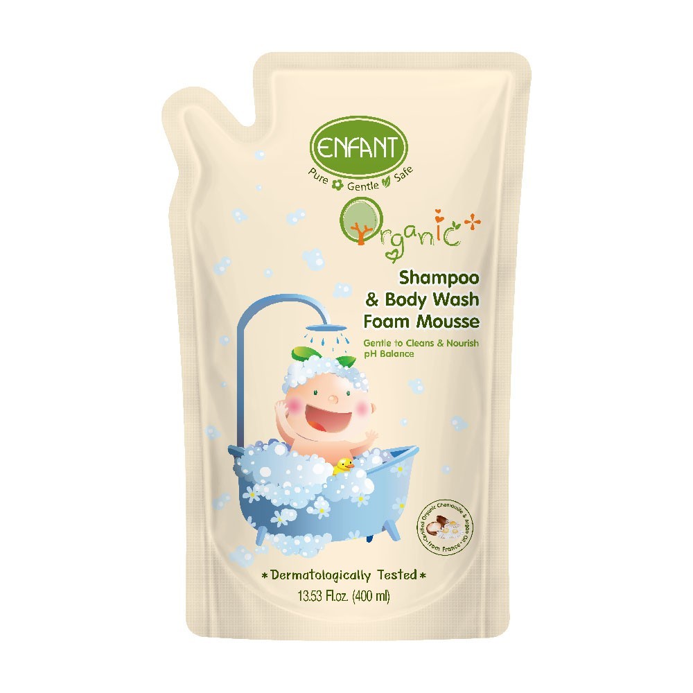 ENFANT (อองฟองต์) ORGANIC SHAMPOO & BODYWASH แชมพูและอาบน้ำ 400 ML. ชนิดถุงเติม