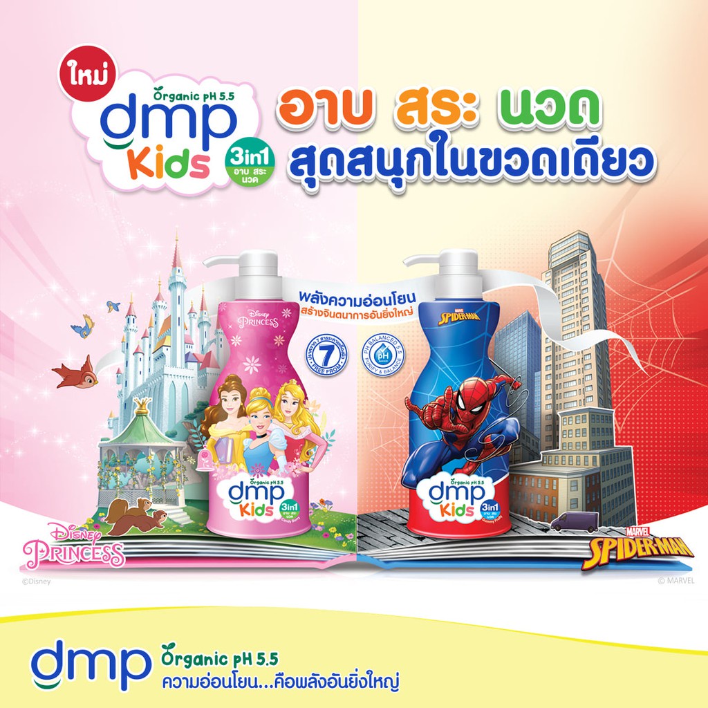 dmp Kids 3 in 1 อาบ สระ นวด เดอมาพอร์น อาบสระนวด สำหรับเด็ก ออแกนิก ขนาด 400มล. **แพค 1 แถม 1**