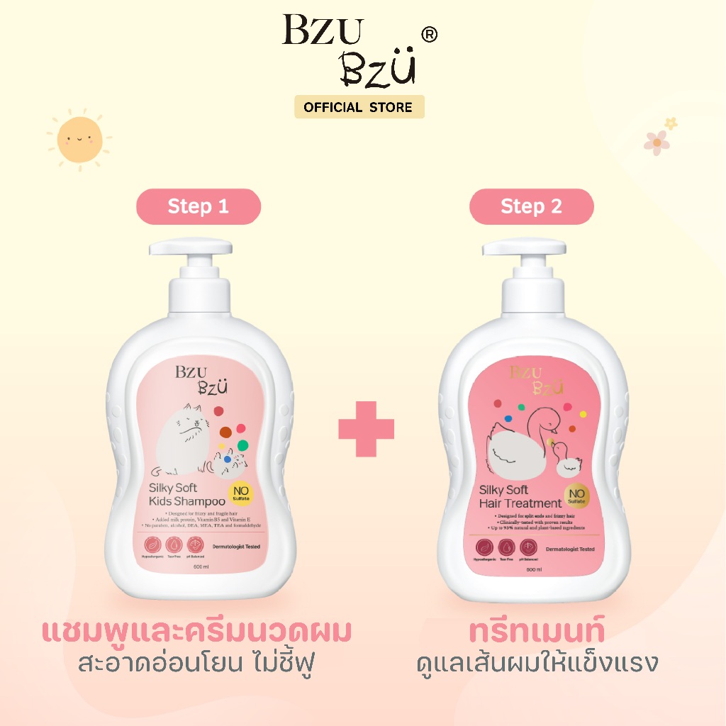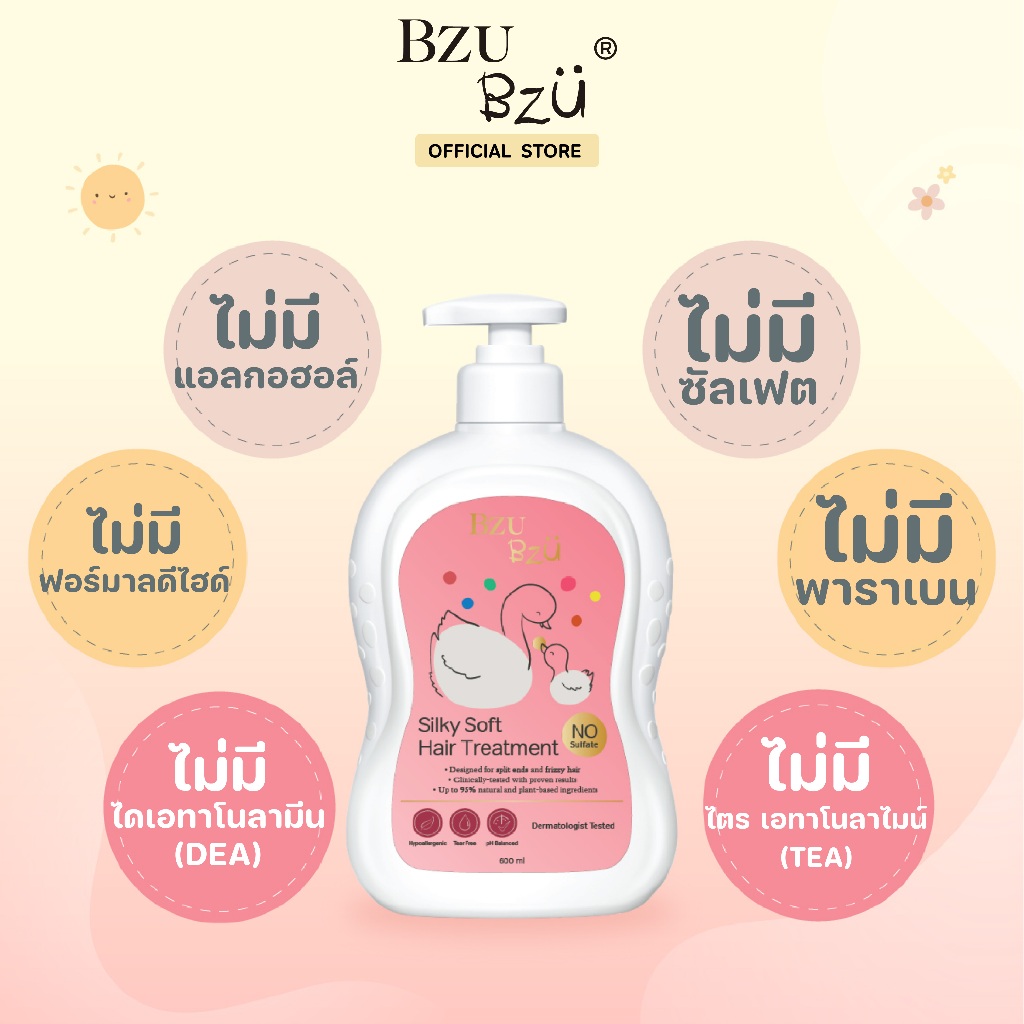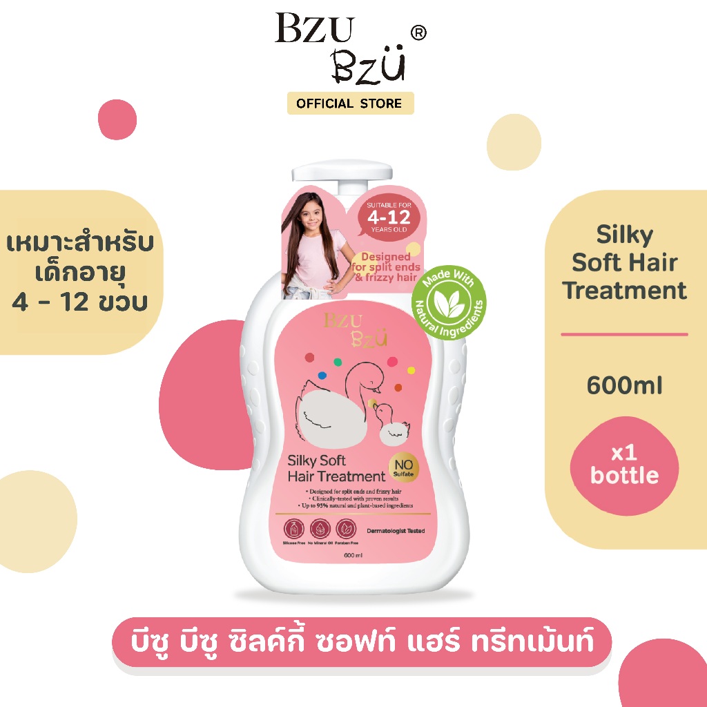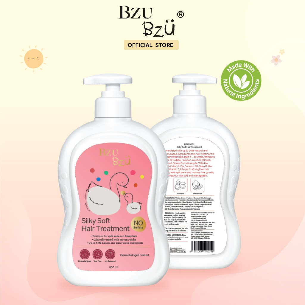 BZU BZU Silky Soft Hair Treatment 600ml บีซู บีซู ทรีทเม้นท์บำรุงผมเด็ก สูตรซิลค์กี้ ซอฟท์ เพื่อผมยาว นุ่ม สวย หวีง่าย