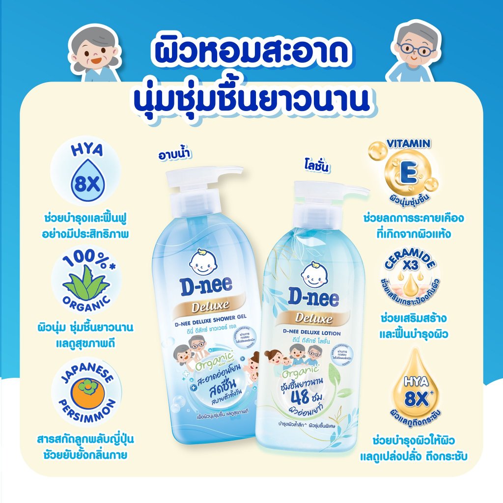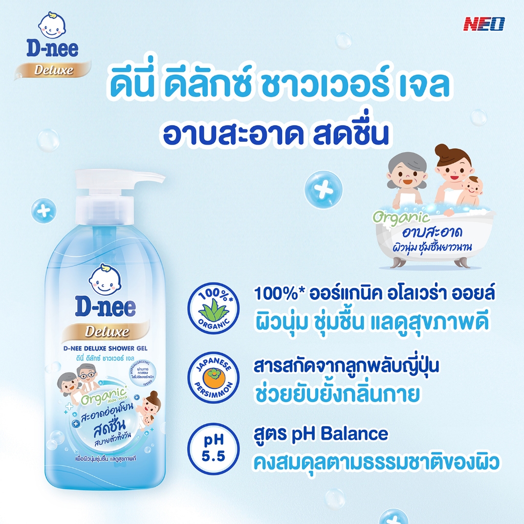 D-nee Organic ดีนี่ ดีลักซ์ เจล ครีมอาบน้ำ สำหรับทุกช่วงวัย ขวดปั๊ม ขนาด 450 มล. ผิวนุ่ม ชุ่มชื้น