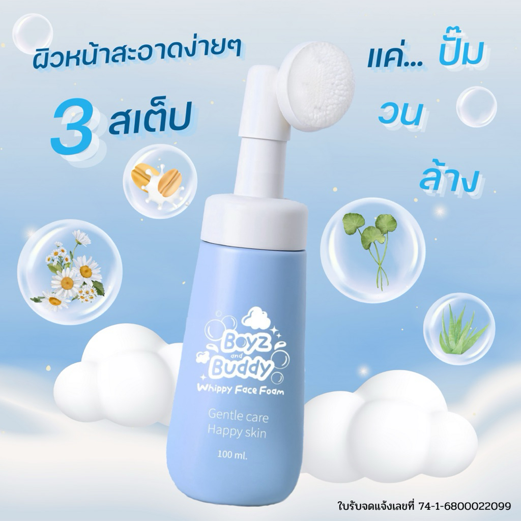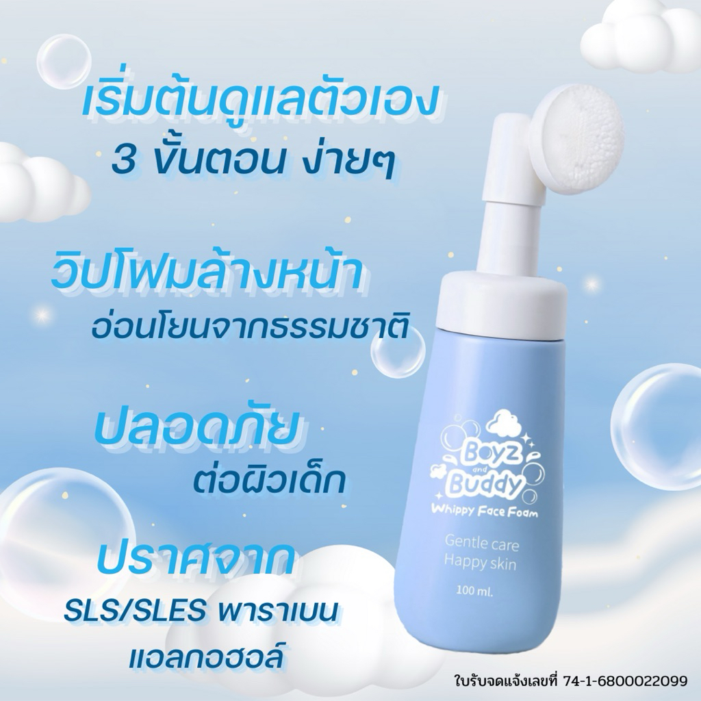 ☁️ โฟมล้างหน้าสำหรับเด็ก Boyz&Buddy วิปโฟมฟองนุ่ม สูตรธรรมชาติ Organic Base อ่อนโยนสำหรับเด็ก ไร้สารระคายเคือง