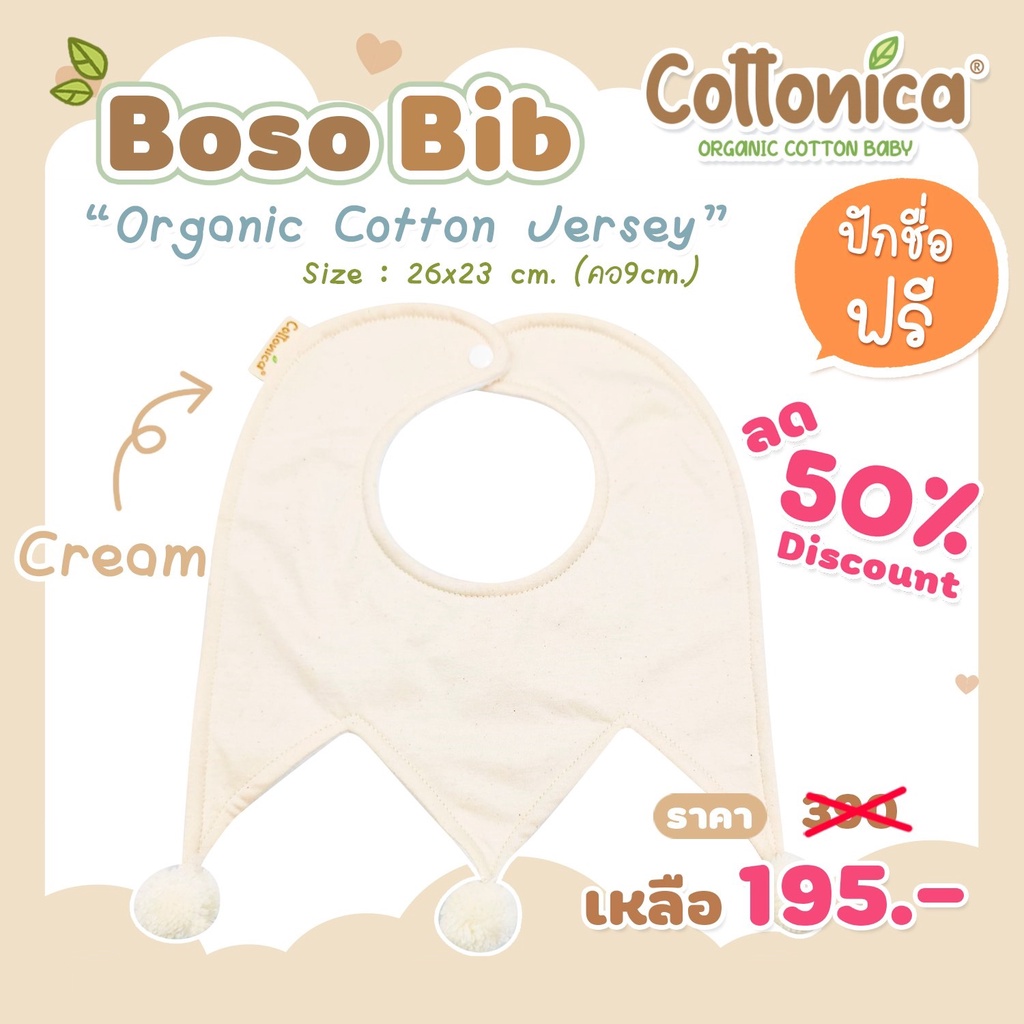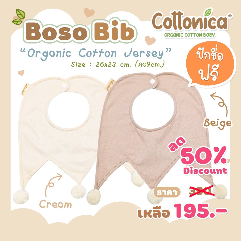 Boso Bib*(Organic Cotton Jersey)ปักชื่อฟรี ! ผ้ากันเปื้อนเด็กอ่อน ผ้ากันเปื้อนน้ำลาย ผ้าซับน้ำลาย ออร์แกนิค(M1044-45)