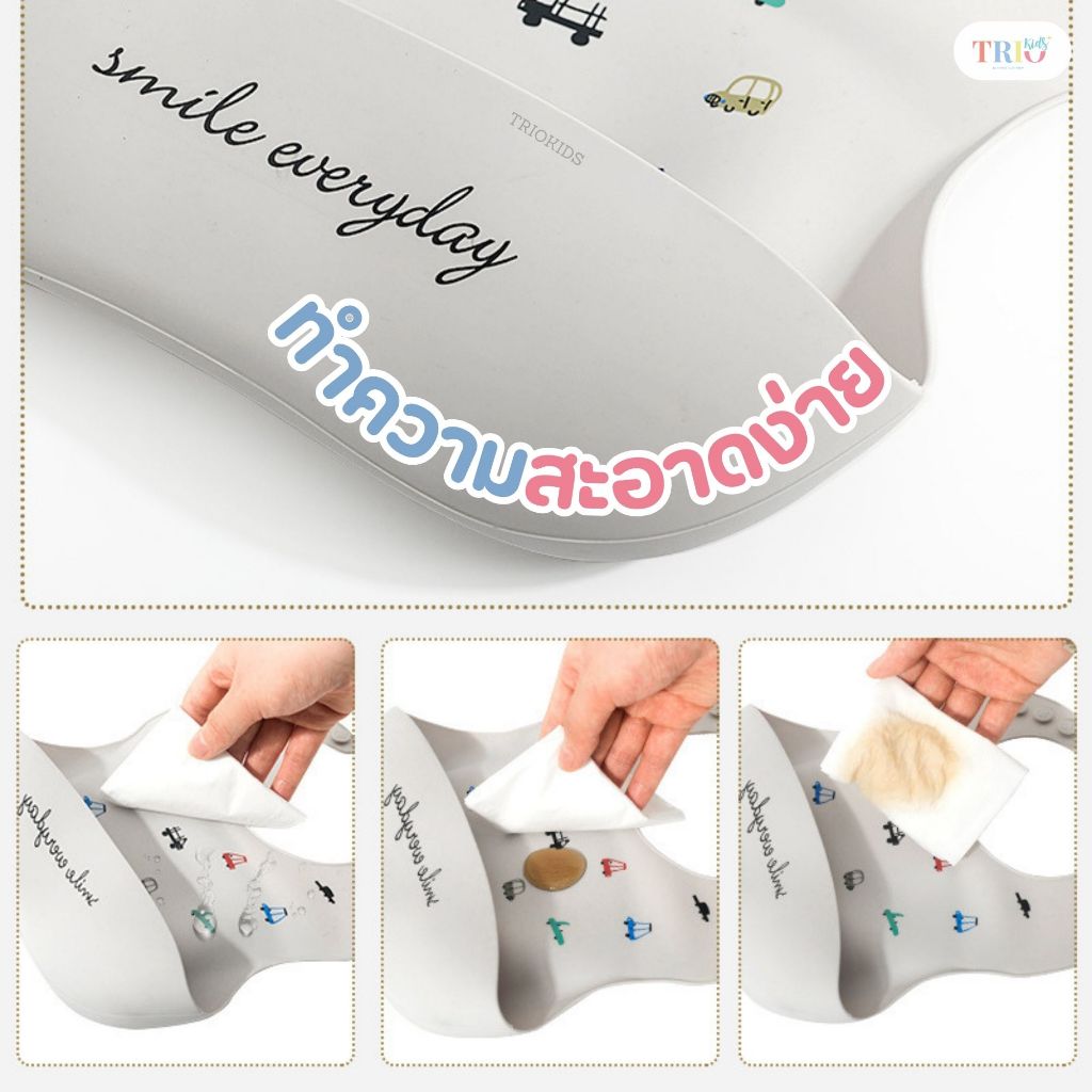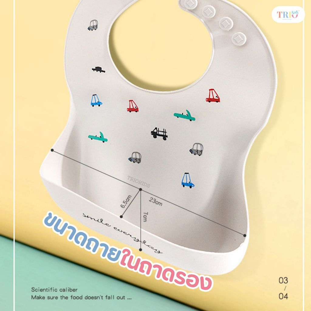 [ ส่งทุกวัน ] ผ้ากันเปื้อนเด็กซิลิโคน ลายน่ารัก มินิมอล มีถาดรองเศษอาหาร ของเด็ก ซิลิโคน เบา
