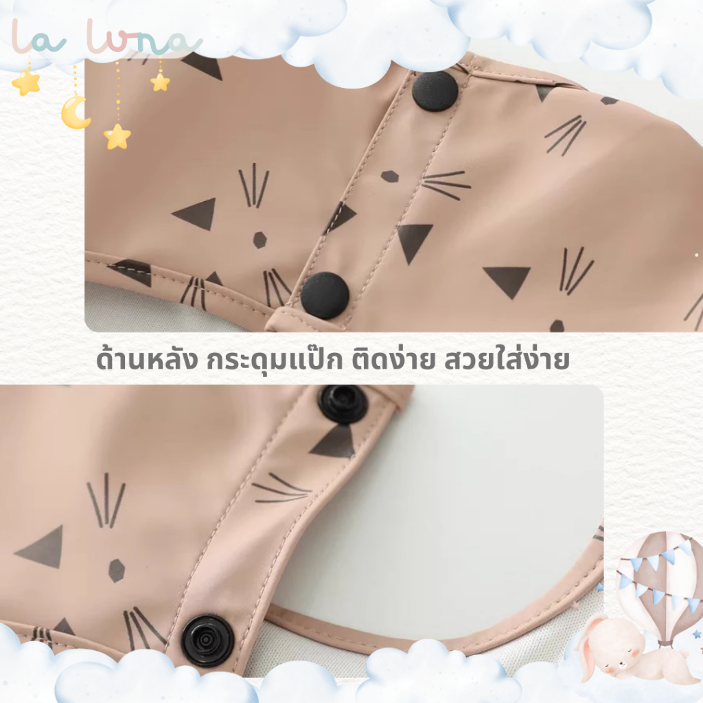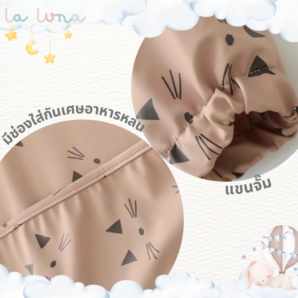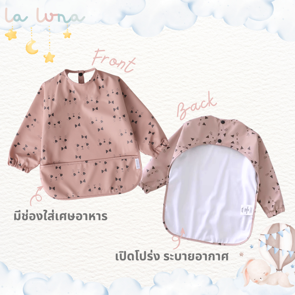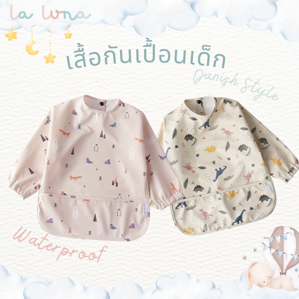 La Luna เสื้อกันเปื้อนเด็ก 3D มีกระเป๋าหน้า กันน้ำ (Danish Style Bib)