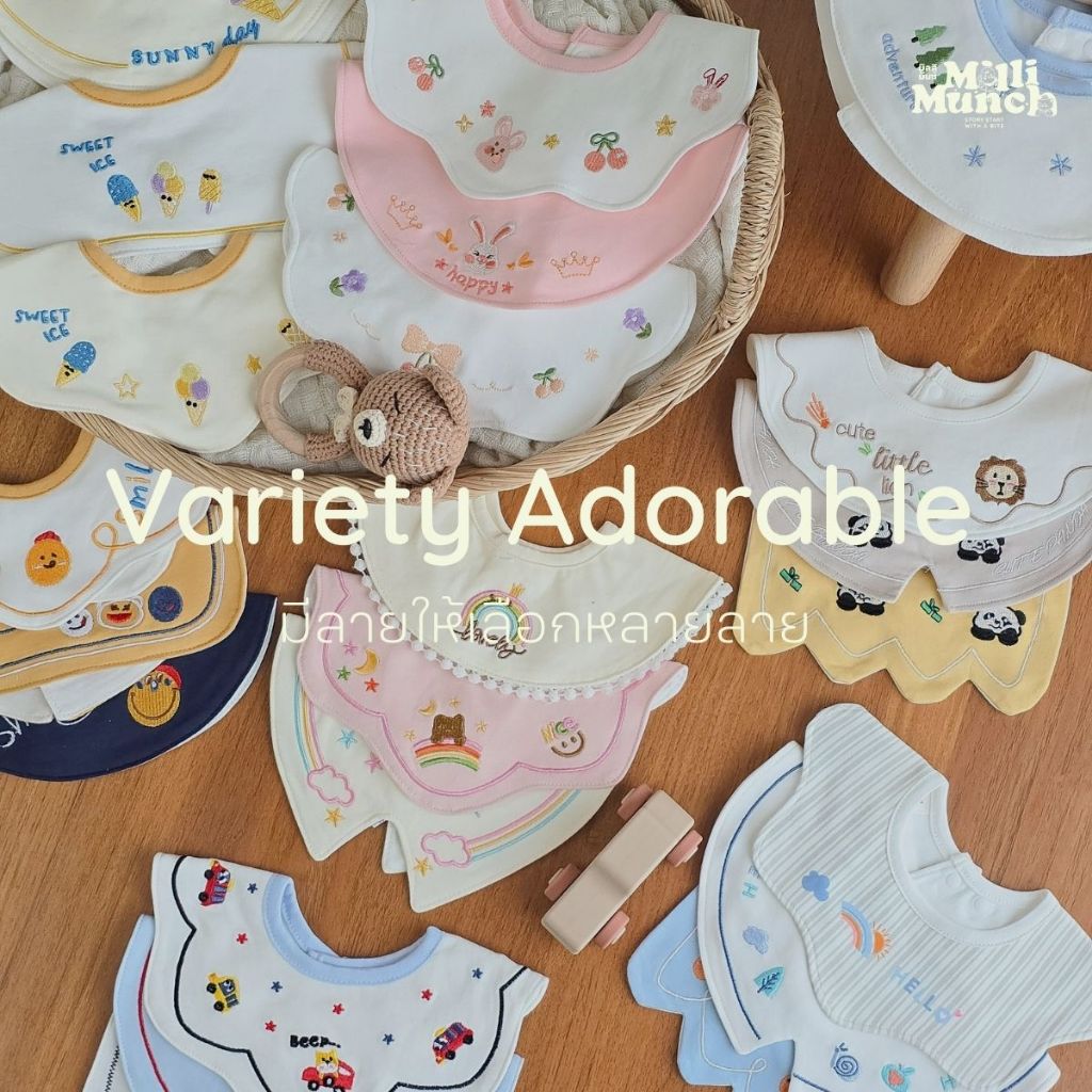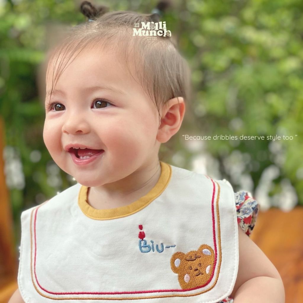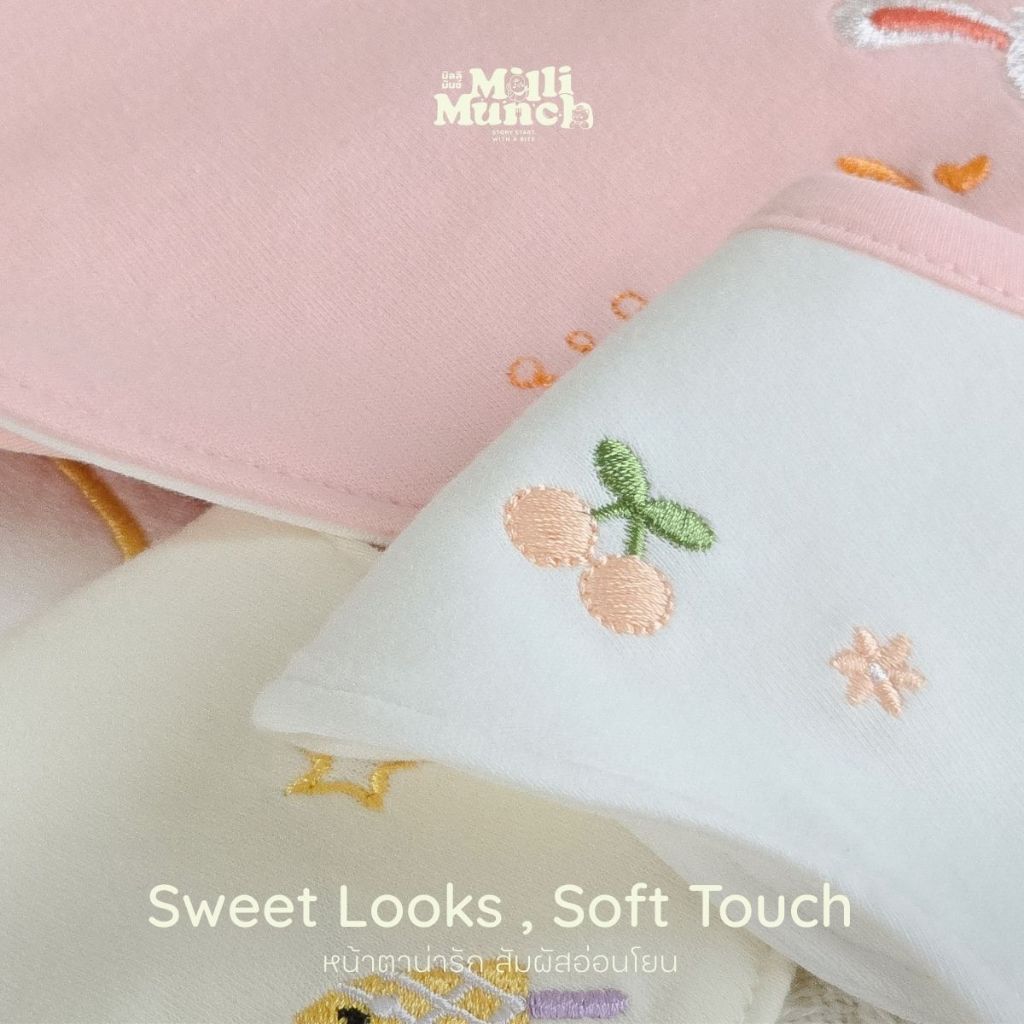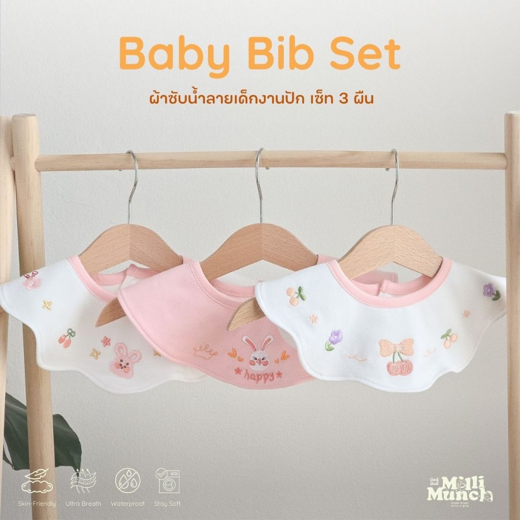 Millimunch (แพค 3 ผืน) ผ้าซับน้ำลายเด็ก ใช้ซับน้ำลาย กันน้ำลายได้ดี รุ่นกันน้ำ งานปักฉลุลาย
