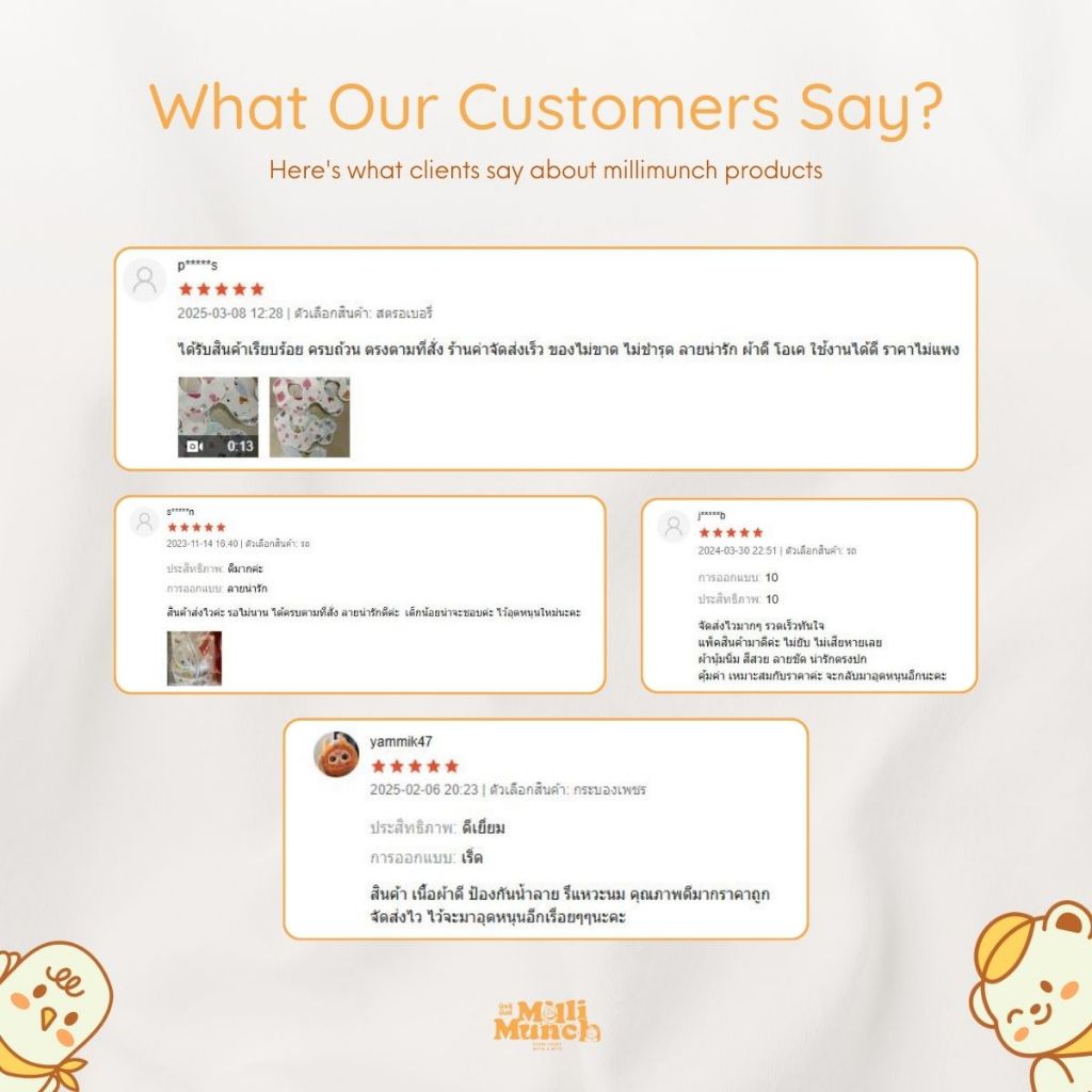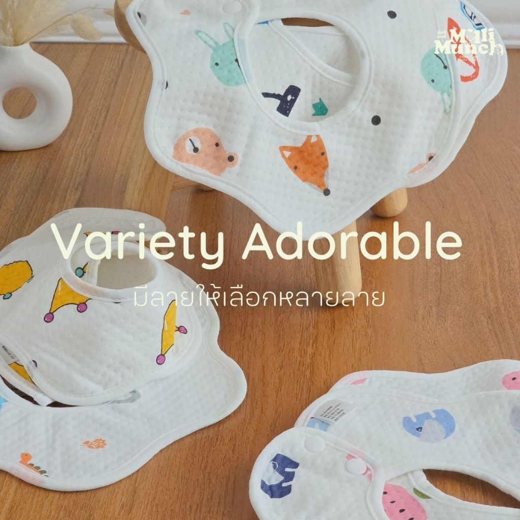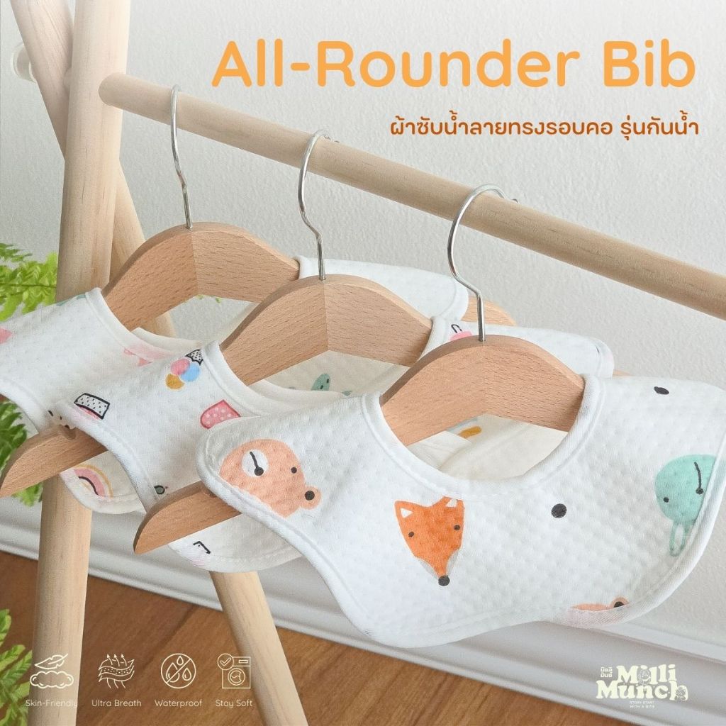 Millimunch ผ้ากันเปื้อนเด็ก ใช้ซับน้ำลายได้ดี รุ่นกันน้ำ หมุนได้รอบทิศทาง เนื้อผ้าเคลือบ TPU