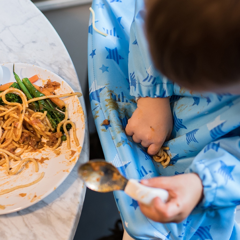 Double cover&catch bib แพคคู่เสื้อกันเปื้อนดูดโต๊ะ แขนยาว