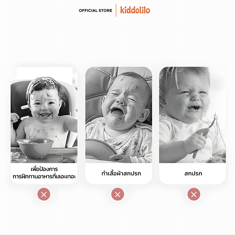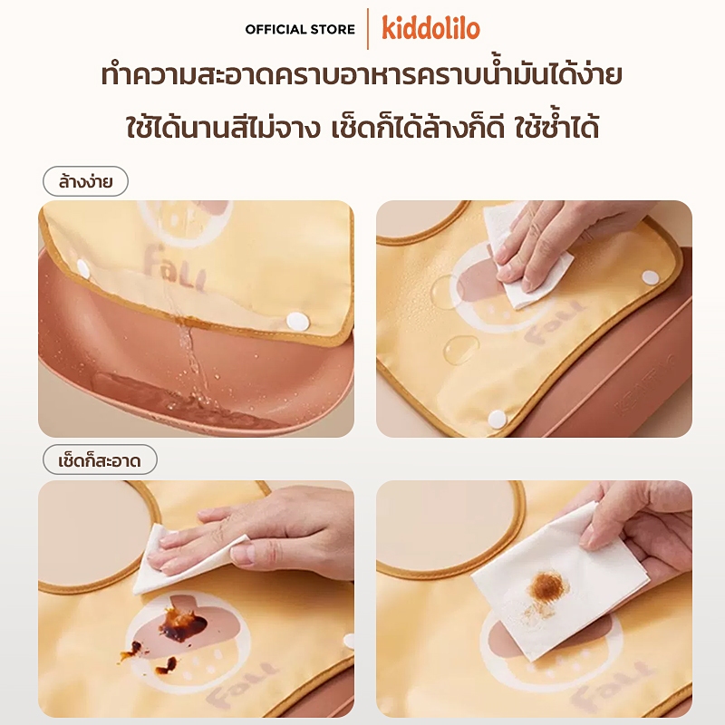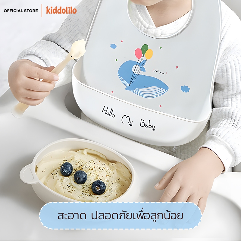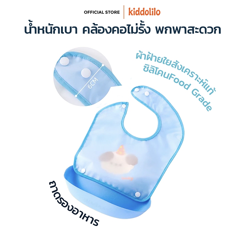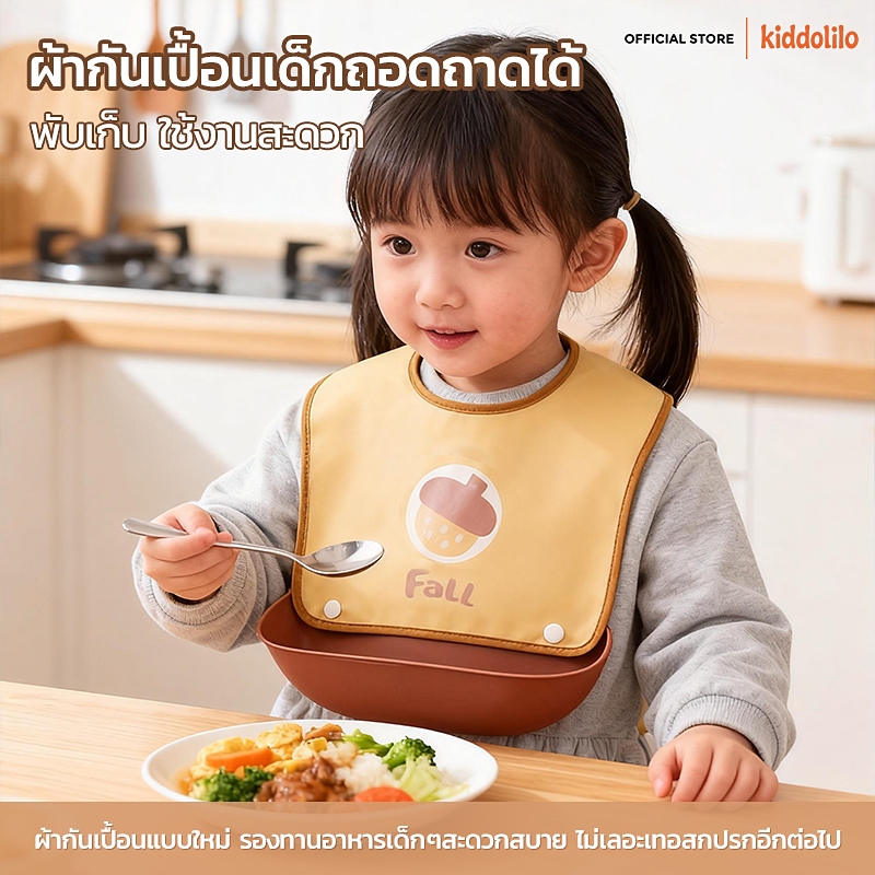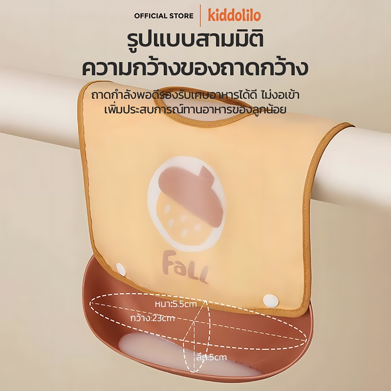 kiddolilo ผ้ากันเปื้อนเด็ก ผ้ากันเปื้อนกินข้าวซิลิโคน ถาดรองถอดได้ เหมาะพกพาไปทานอาหารข้างนอก