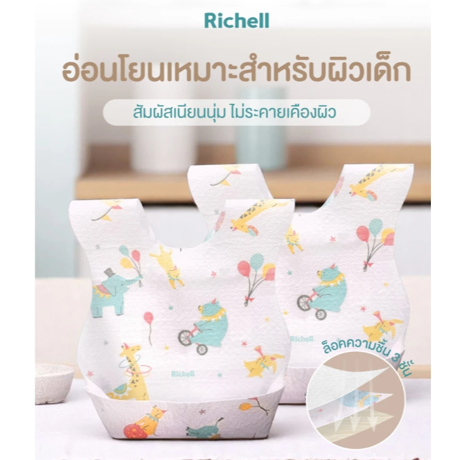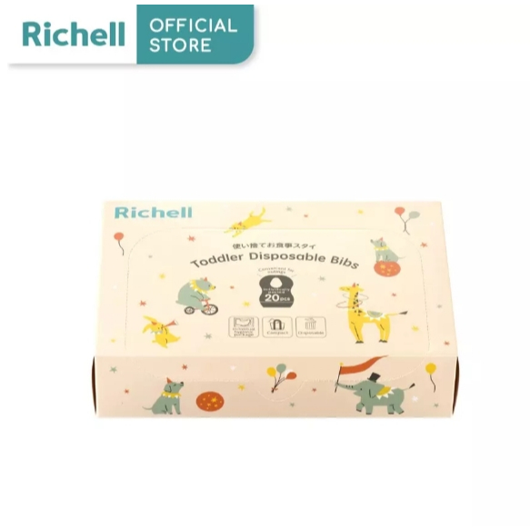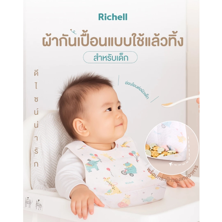 Richell (ริเชล) Disposable Bibs ผ้ากันเปื้อนแบบใช้แล้วทิ้ง ดีไซน์น่ารัก รองเศษอาหารได้ กล่อง 20 ชิ้น #420149