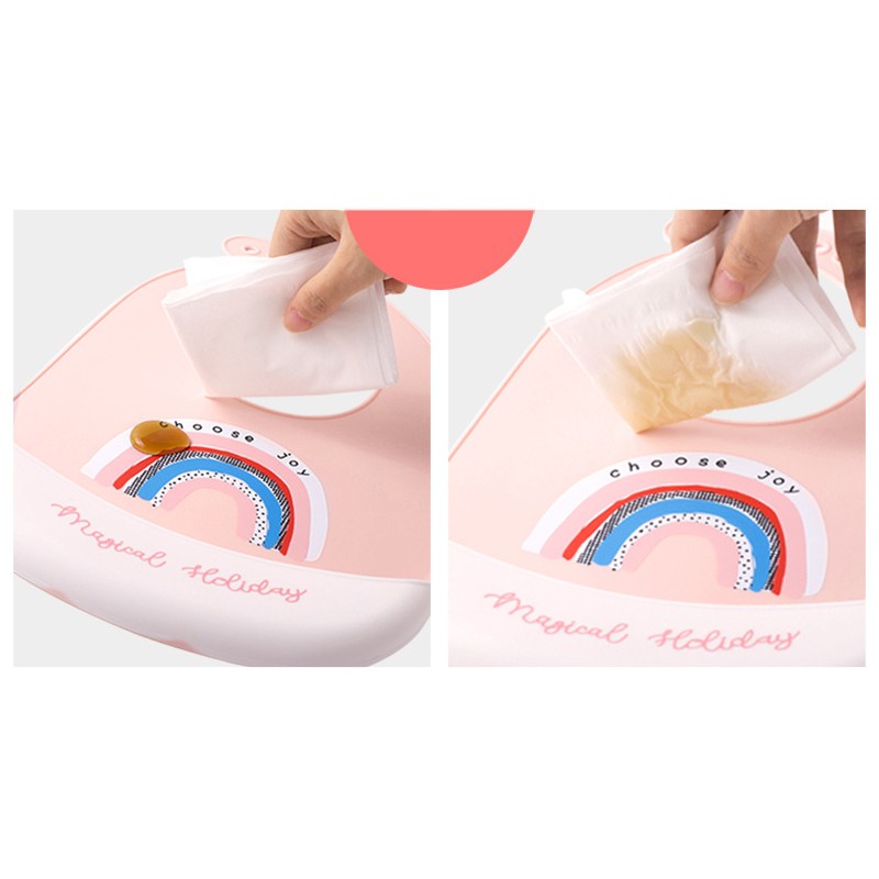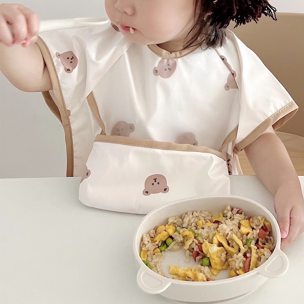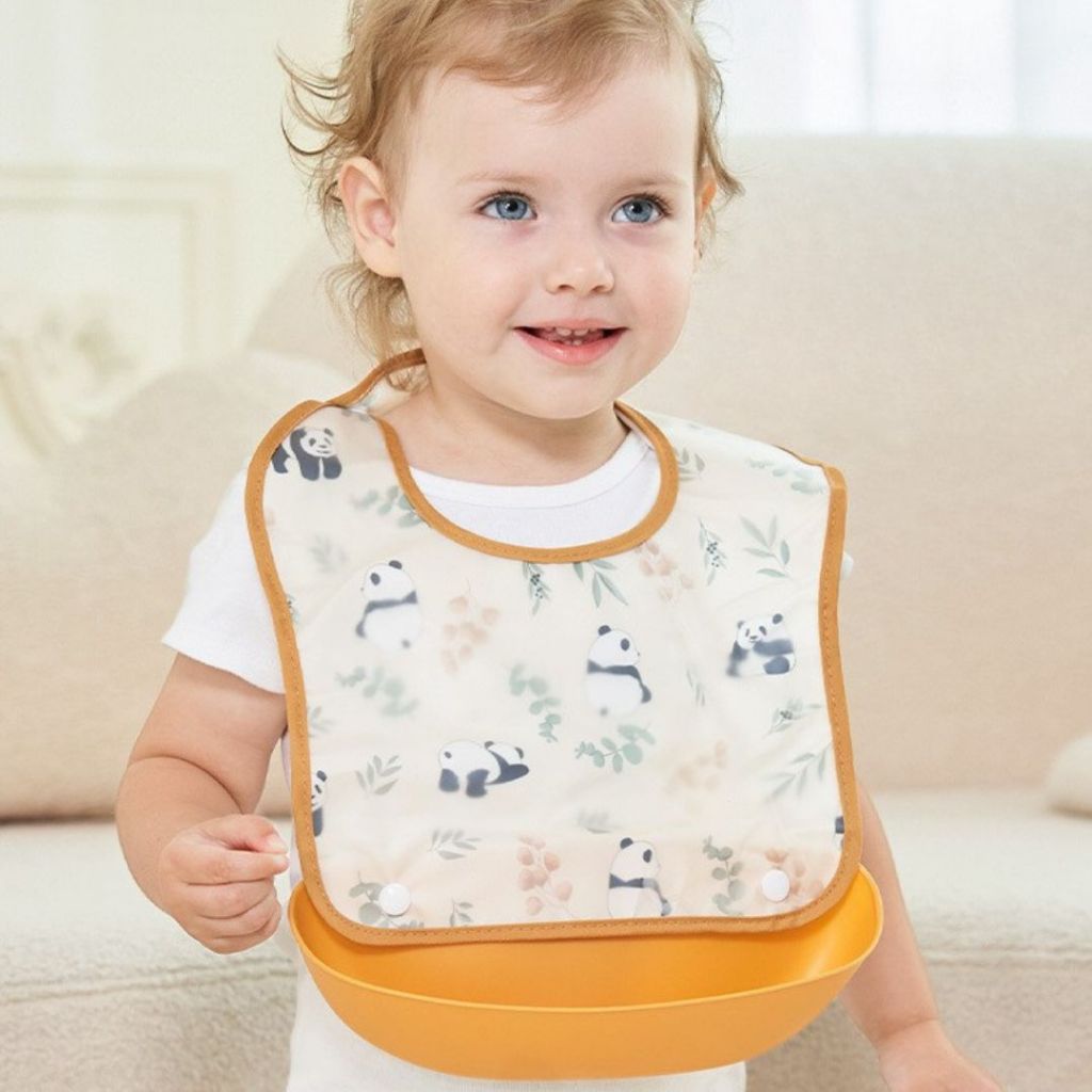 ผ้ากันเปื้อนเด็ก กันเปื้อนถาดซิลิโคลน กันน้ำสำหรับเด็กฝึกกินข้าว ปลอดภัยสำหรับเด็ก