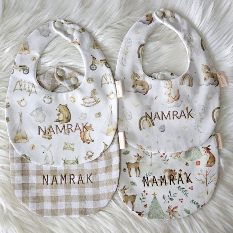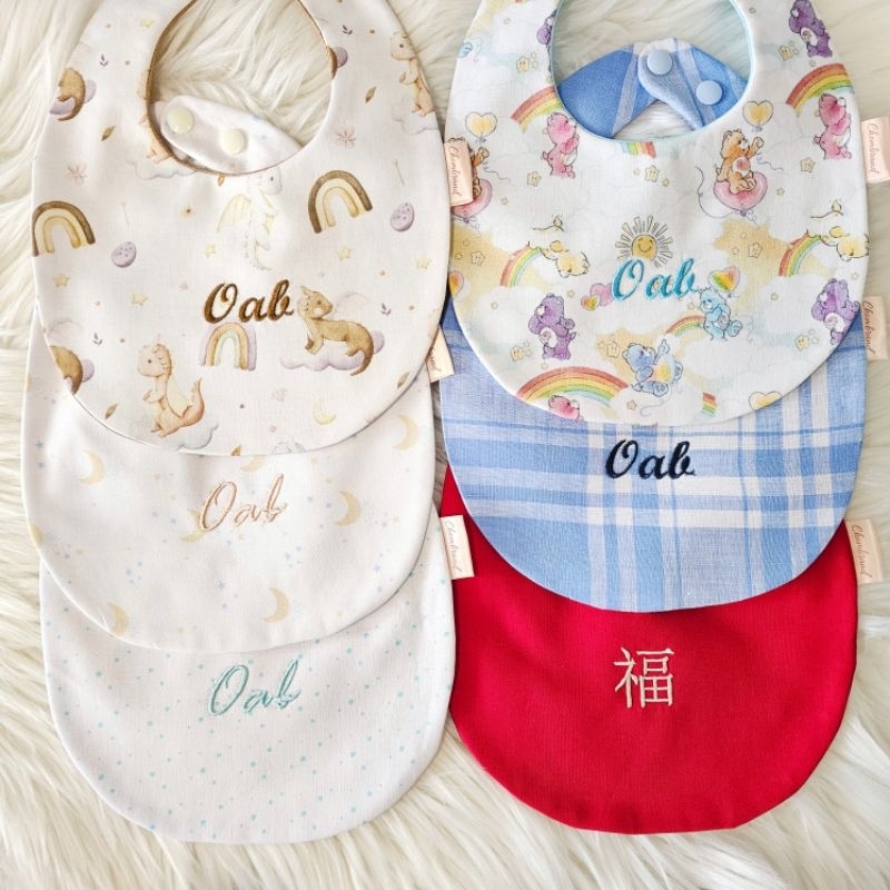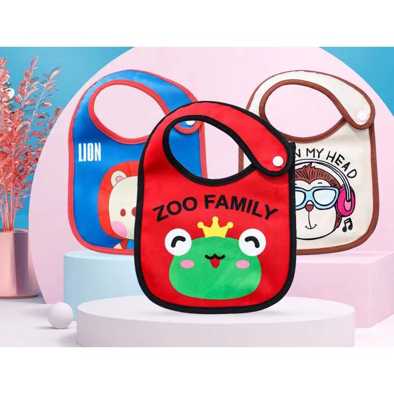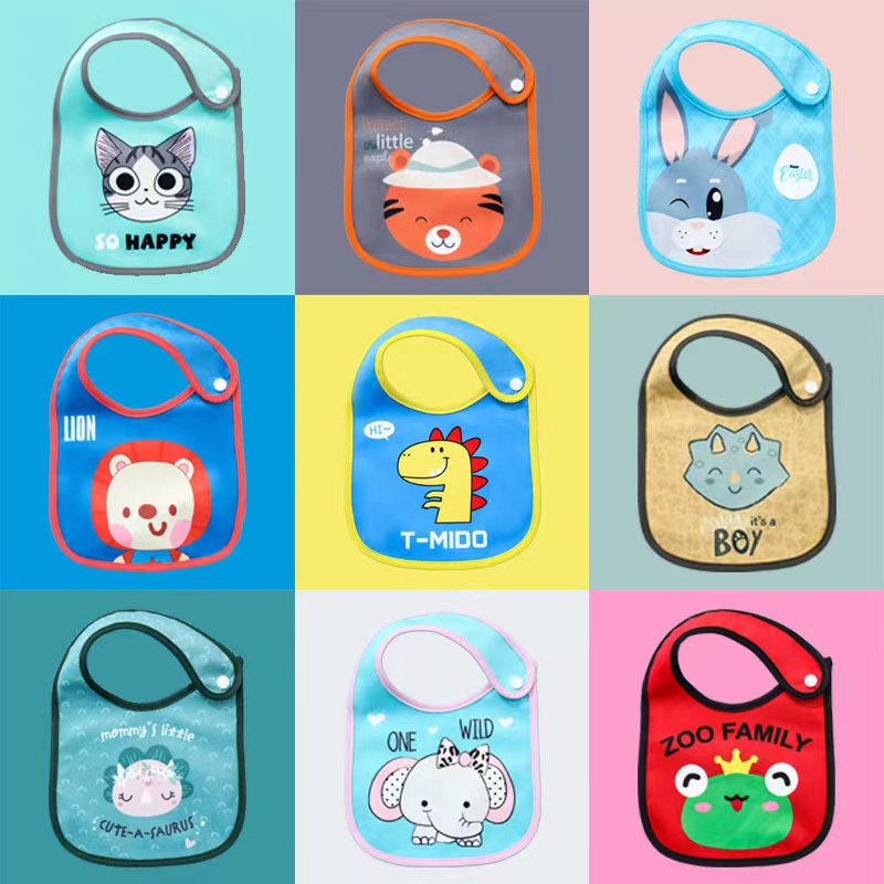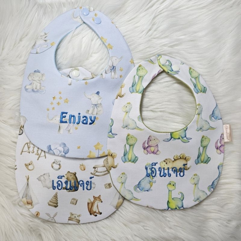 พร้อมส่ง! AG300 ผ้ากันเปื้อนเด็ก ผ้าซับน้ำลายเด็ก ลาย 2 ด้าน กระดุม 2 ระดับ