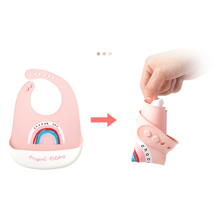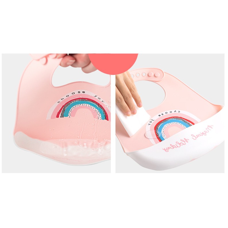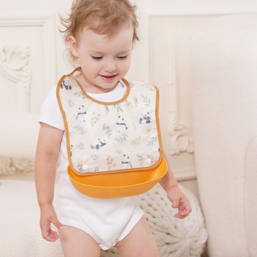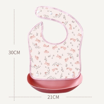 ผ้ากันเปื้อนเด็ก ปรับได้ 6 ระดับ มีถาดรองเศษอาหาร ซิลิโคน
