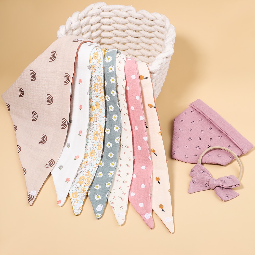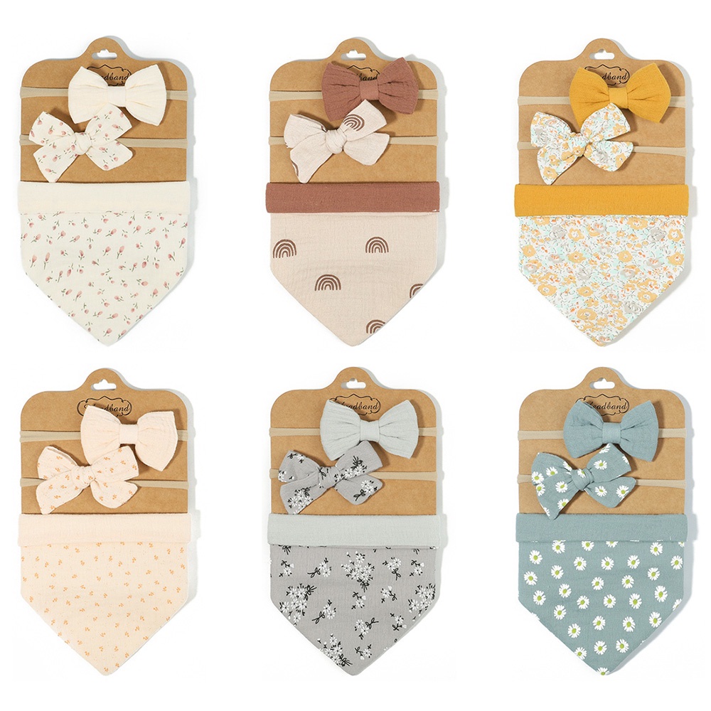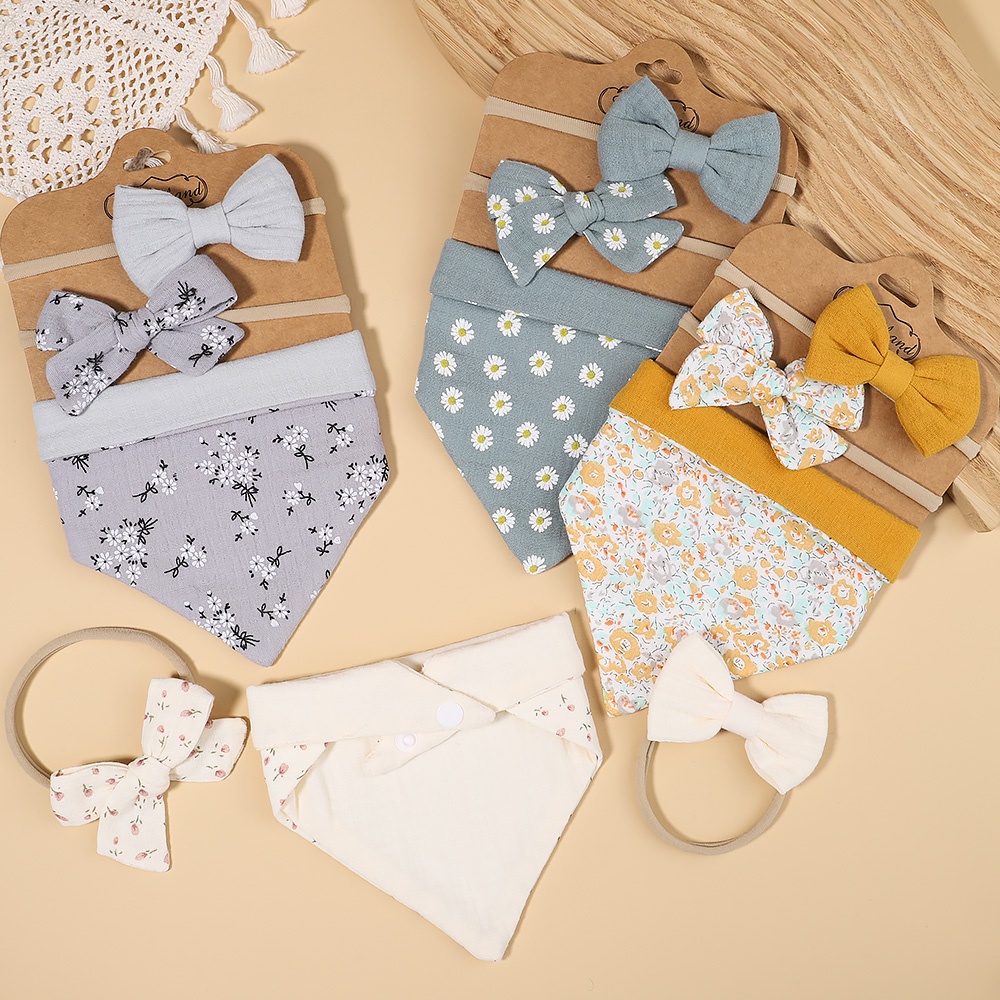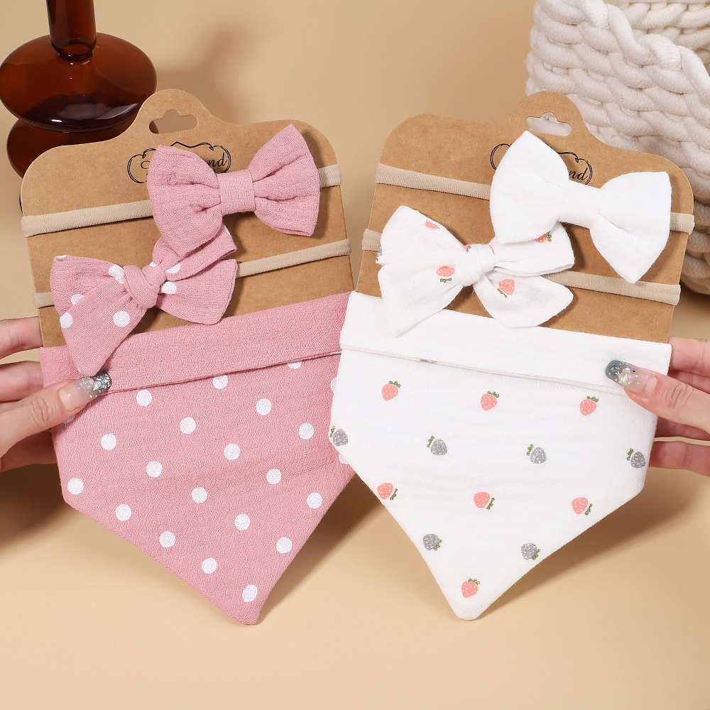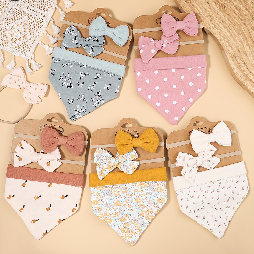 ผ้ากันเปื้อน ผ้าฝ้าย ทรงสามเหลี่ยม พิมพ์ลายโบว์ สําหรับเด็กทารกผู้ชาย และเด็กผู้หญิง จํานวน 3 ชิ้น ต่อชุด
