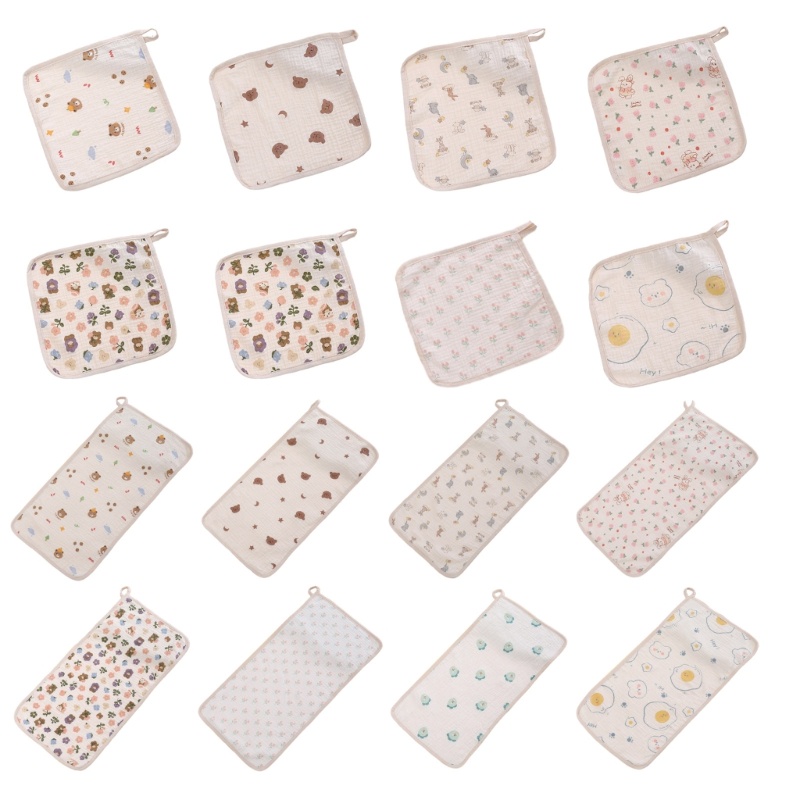 ผ้าเช็ดน้ําลาย สิ่งจําเป็นในชีวิตประจําวันผ้าเช็ดหน้าคู่ผ้ากอซสี่เหลี่ยมเล็กๆตารางเด็กทารกผ้าฝ้ายแท้