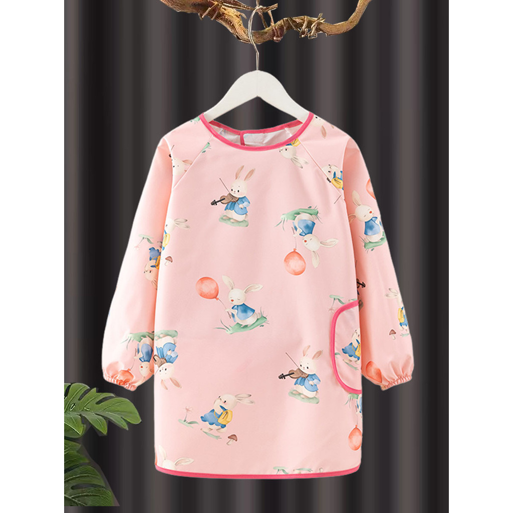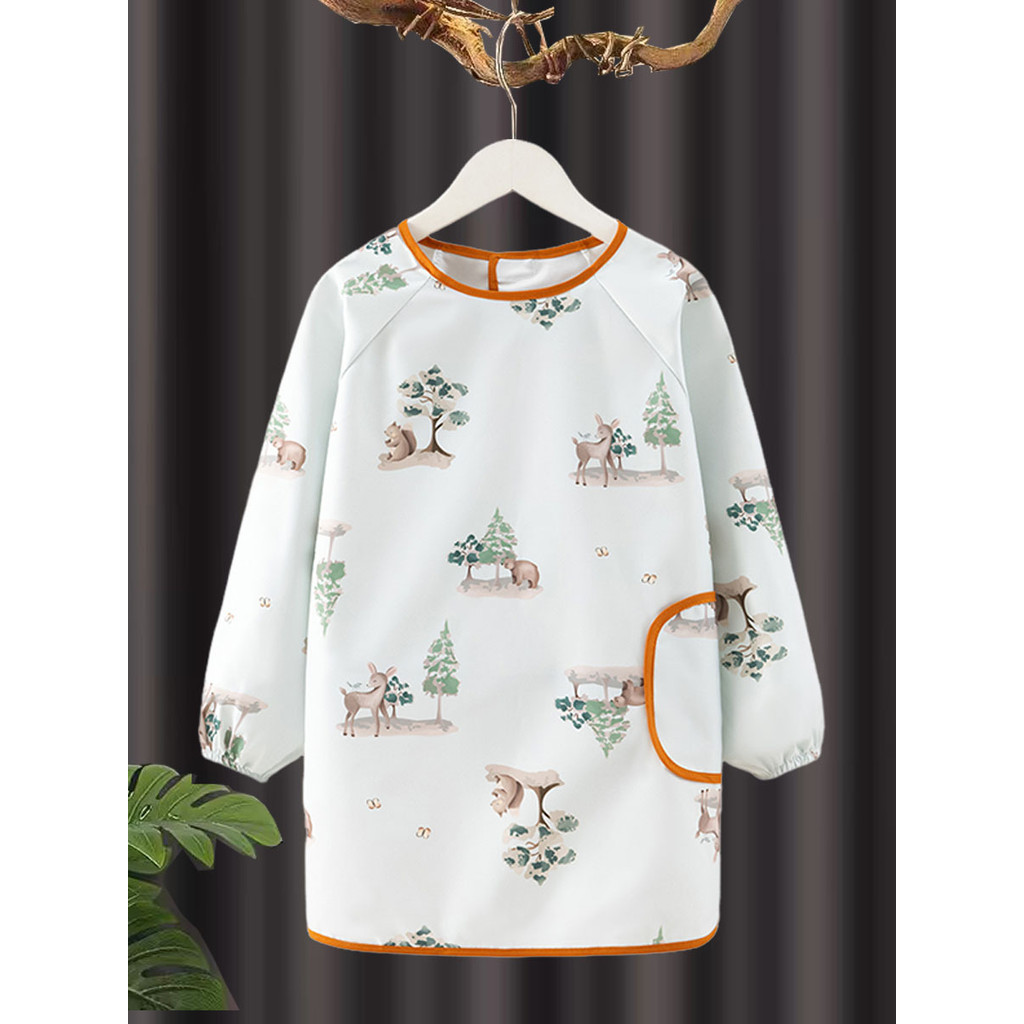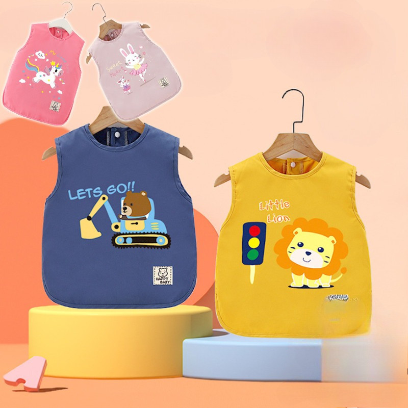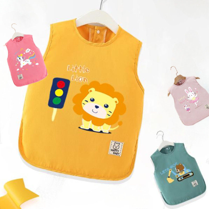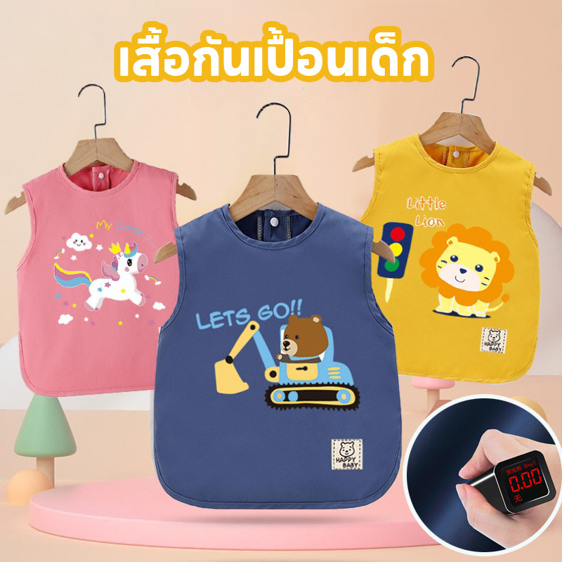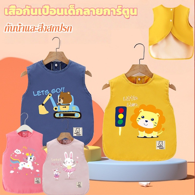 เสื้อกันเปื้อนเด็กลายการ์ตูน กันน้ำและสิ่งสกปรก ปุ่มสแน็ปคู่ ใส่ได้ทั้งชายและหญิง ระบายอากาศดี ของใช้สำหรับเด็ก