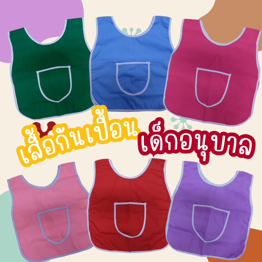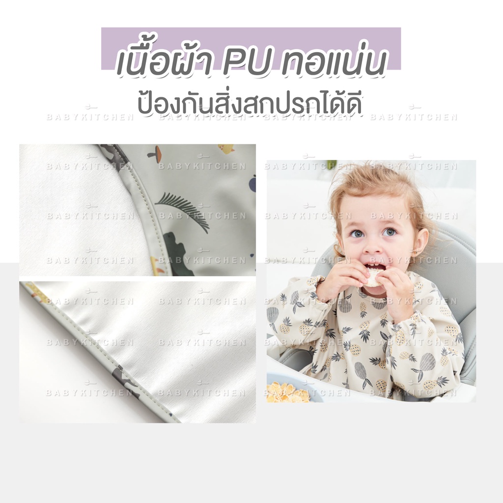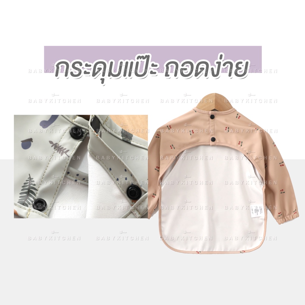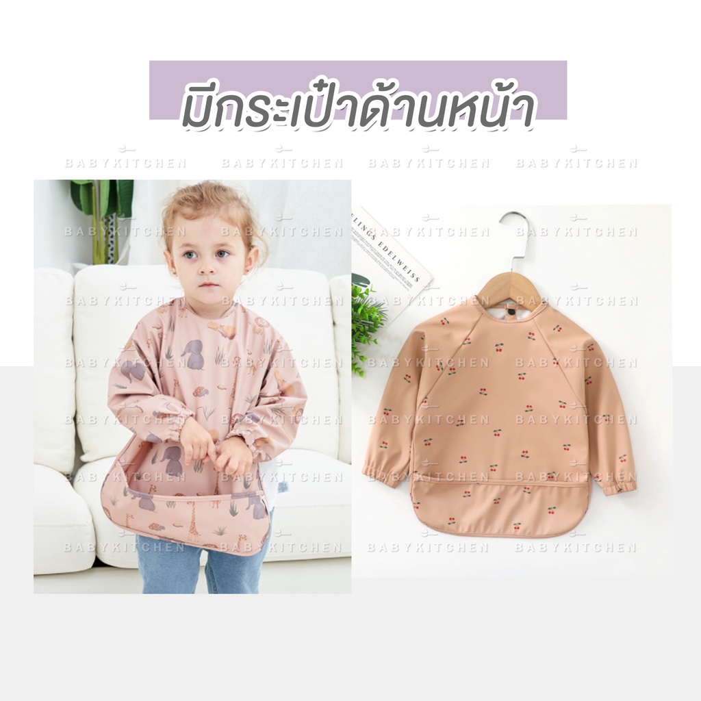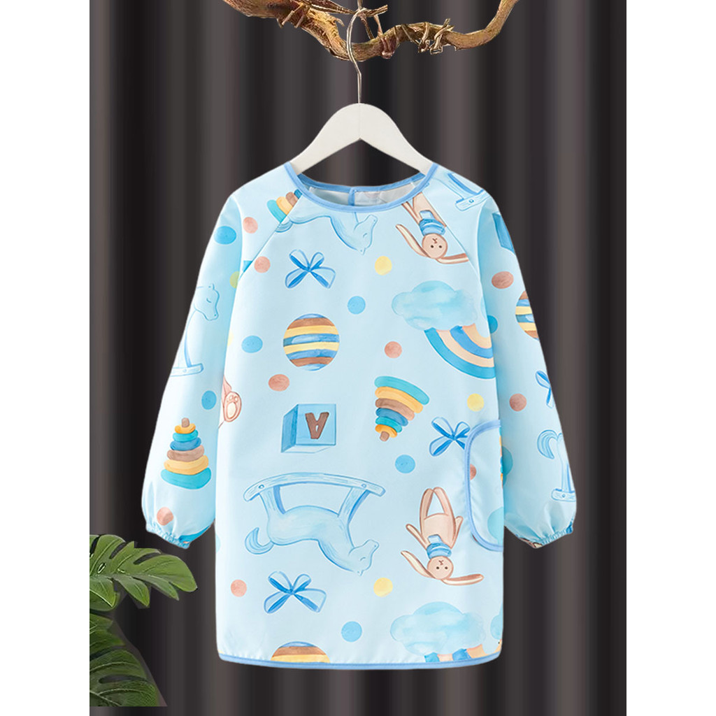 เสื้อกันเปื้อนเด็กลายการ์ตูน กันน้ำและสิ่งสกปรก ปุ่มสแน็ปคู่ ใส่ได้ทั้งชายและหญิง ระบายอากาศดี ของใช้สำหรับเด็ก