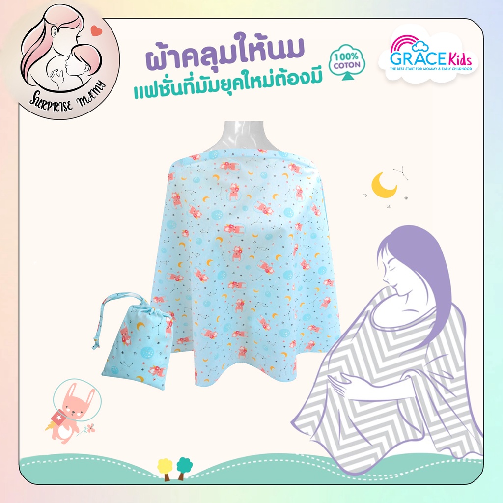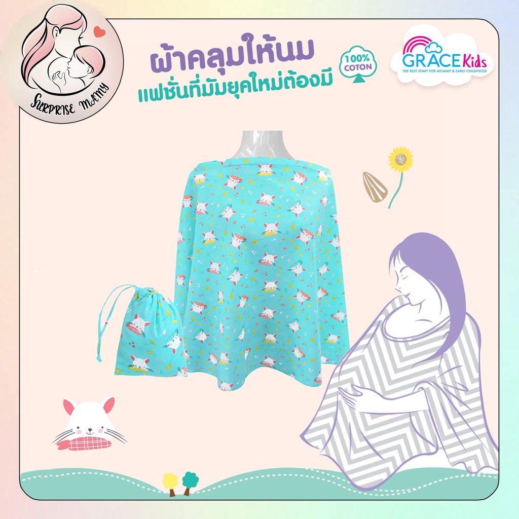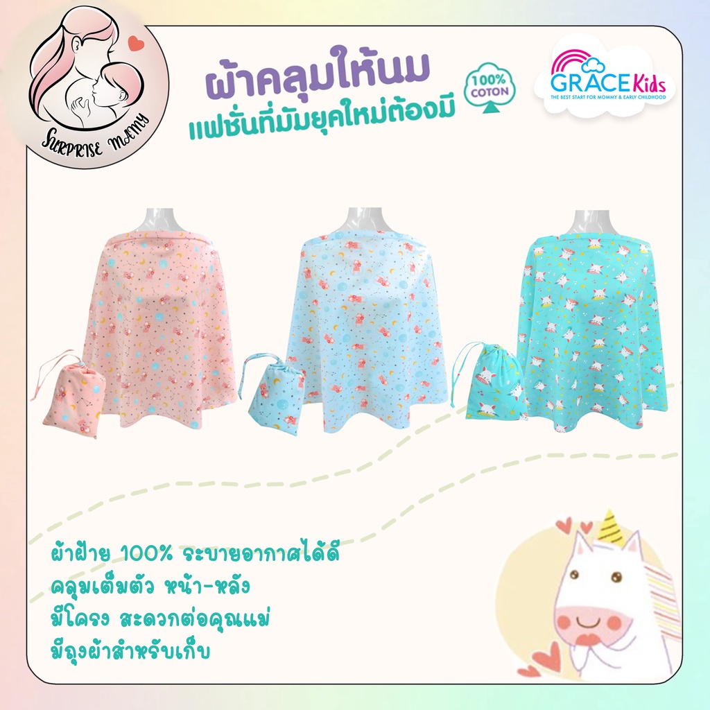 Grace Kids ผ้าคลุมให้นม เป็นฝ้าย100% ระบายอากาศดี ลูกไม่ร้อน มีถุงผ้าให้ ปั๊มได้ทุกที่