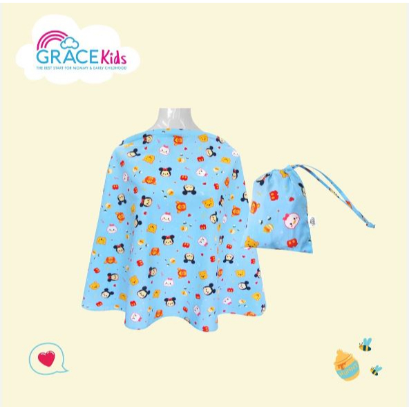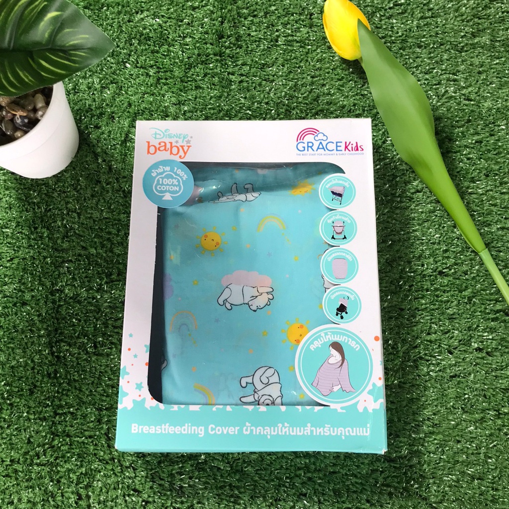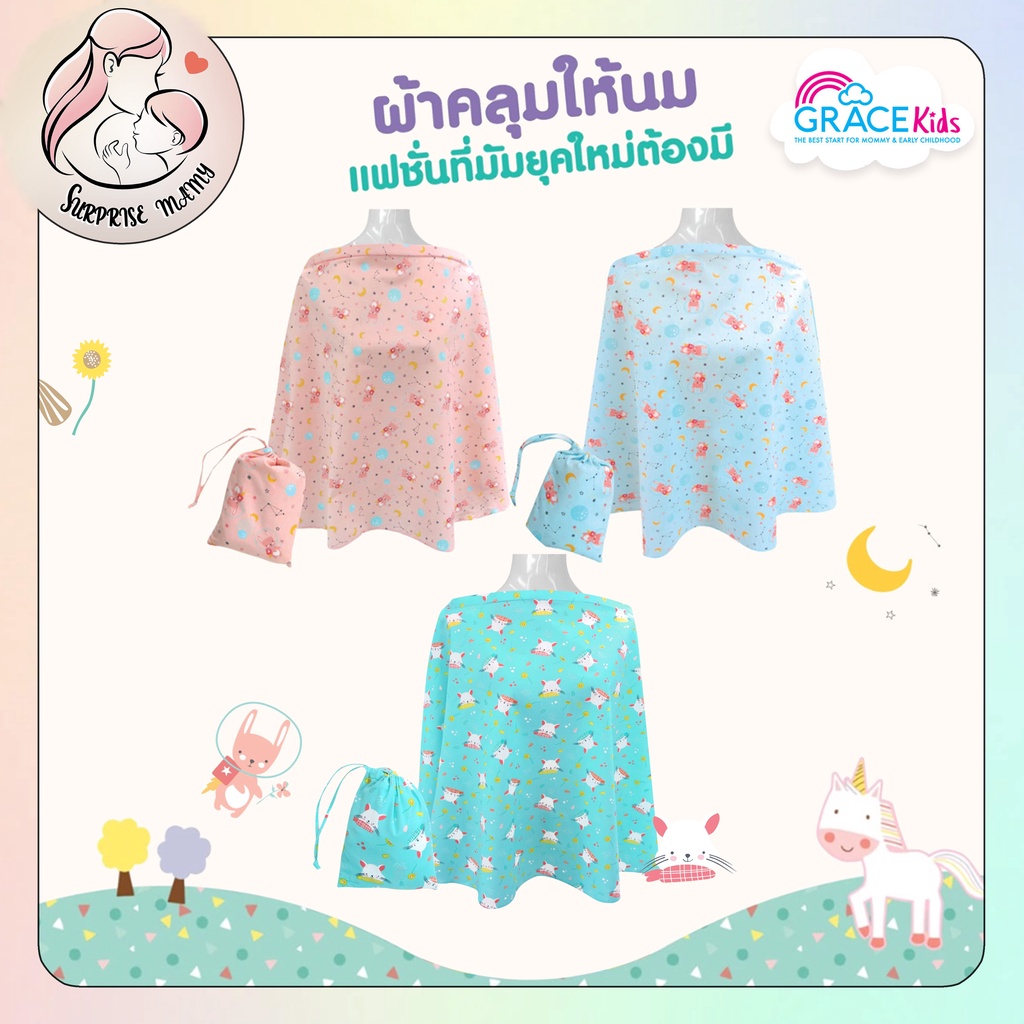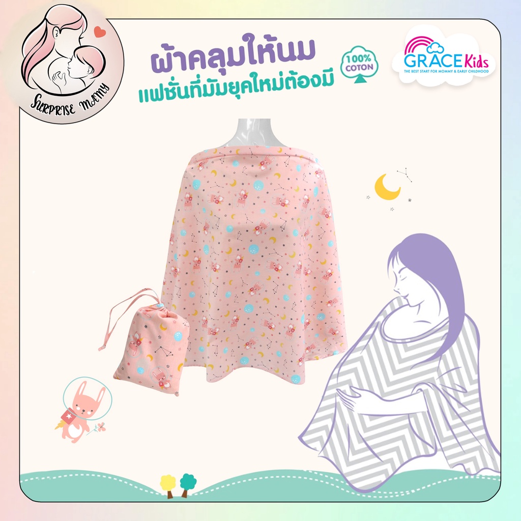 Grace Kids ผ้าคลุมให้นม เป็นฝ้าย100% ระบายอากาศดี ลูกไม่ร้อน มีถุงผ้าให้ ปั๊มได้ทุกที่