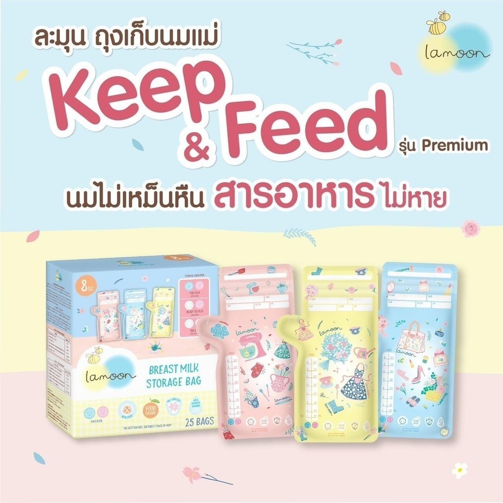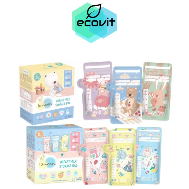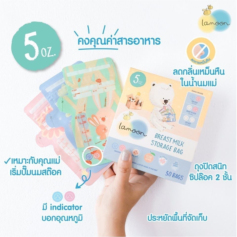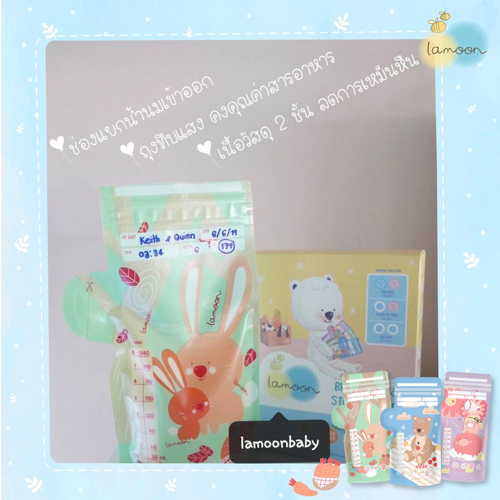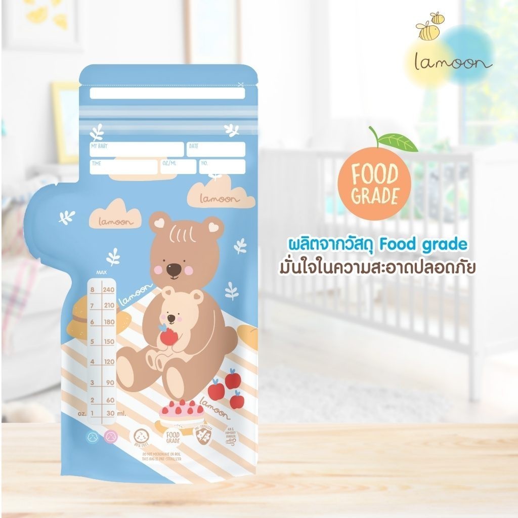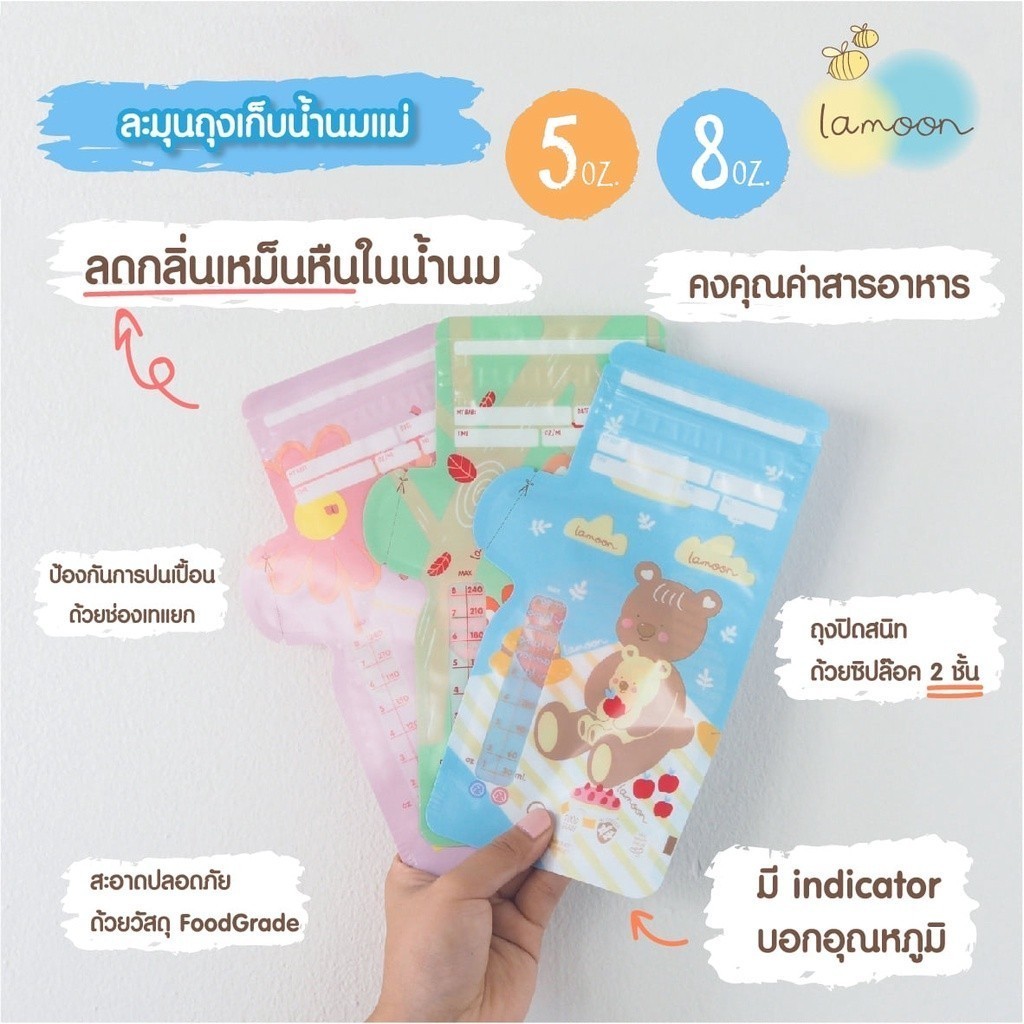 [1 กล่อง] Lamoon brest milk storage bag ลามุน ถุงเก็บนม 5 oz./8 oz. [คละลายหมี/สวีท]