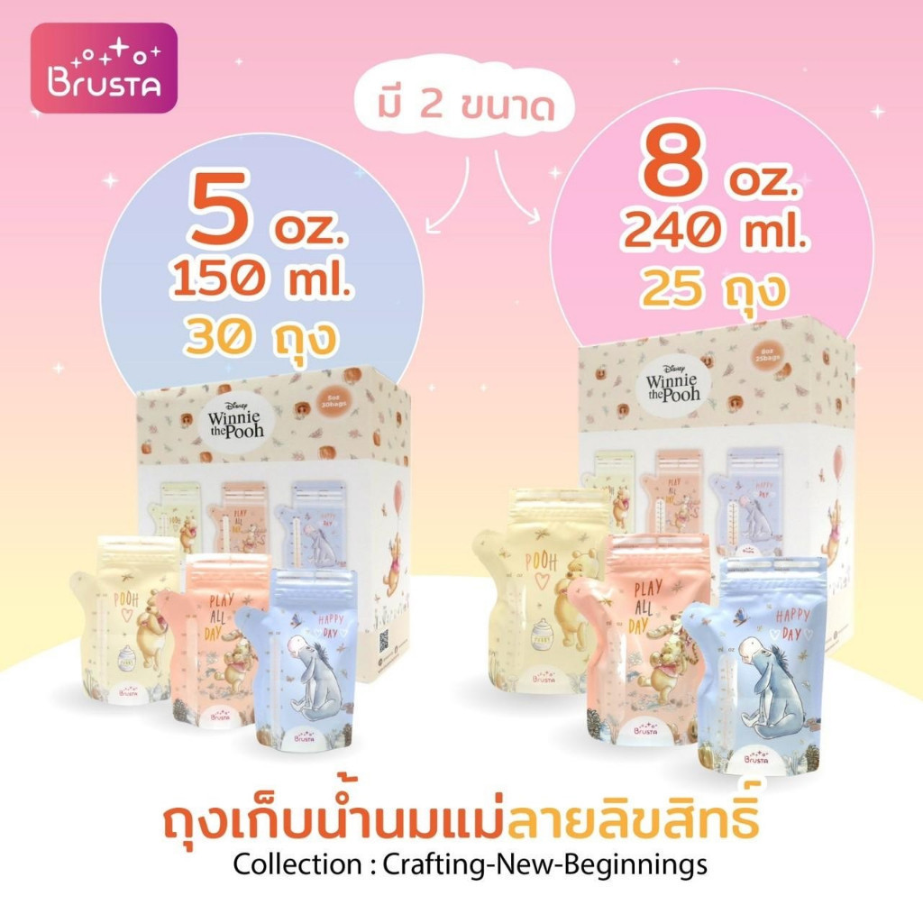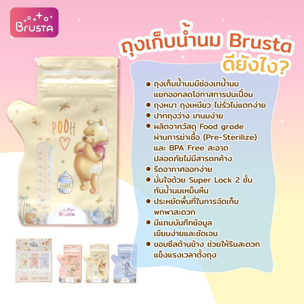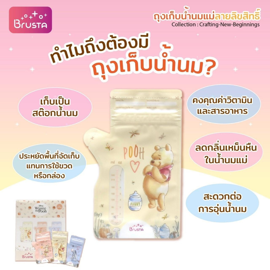 Brusta ถุงเก็บน้ำนม Winnie The Pooh/ Disney Princess ลิขสิทธิ์แท้ ถุงหนา ไม่รั่วไม่แตก ลดกลิ่นหืน ลายน่ารักมาก