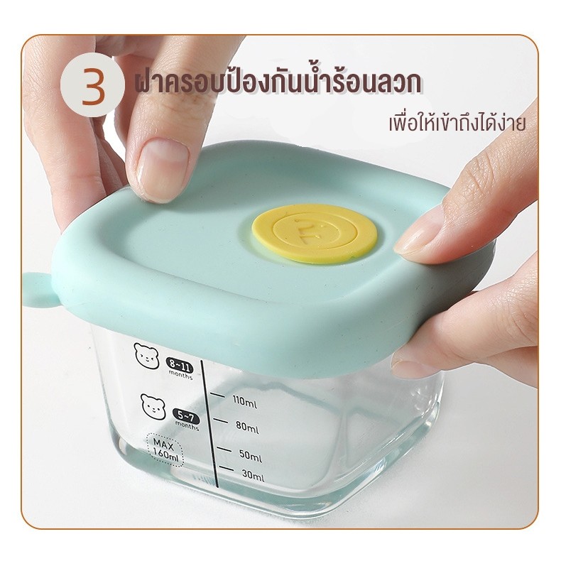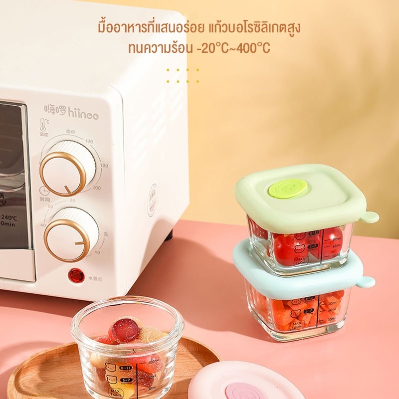 Heykiddo : ถ้วยแก้วแช่อาหารจัมโบ้ อุ่น – ฟรีสอาหารสำหรับเตรียมอาหาร จุ 300ml. ทนอุณหภูมิ -20-400องศา