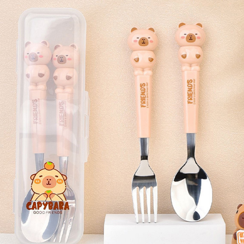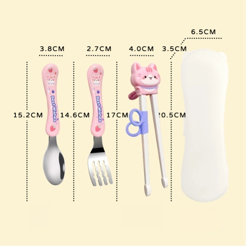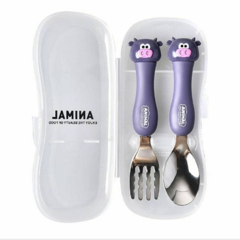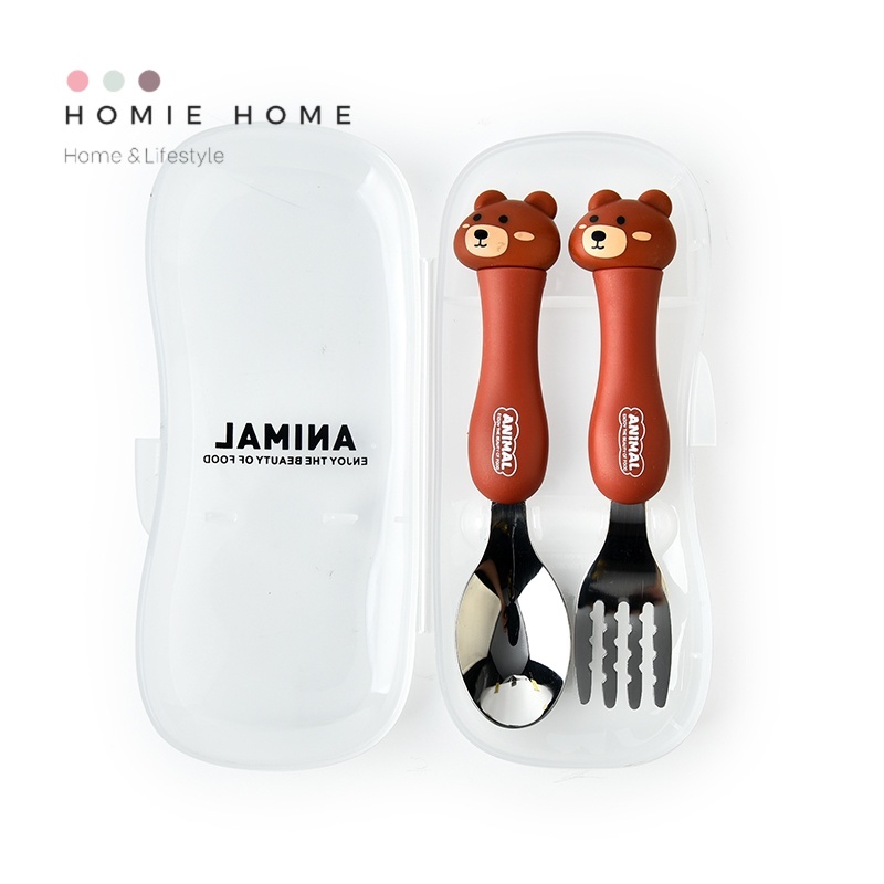 HH-224 ช้อนส้อมสำหรับเด็ก ช้อนเด็ก ลายน่ารัก คุณภาพดี มีกล่องเก็บ พกพาสะดวก