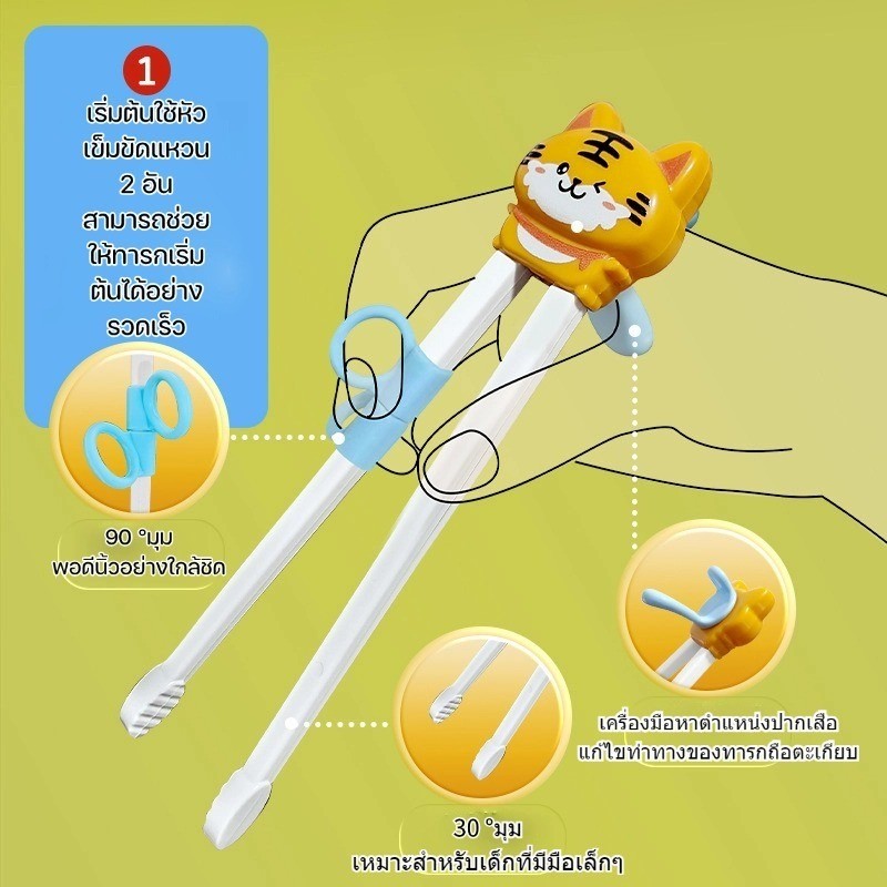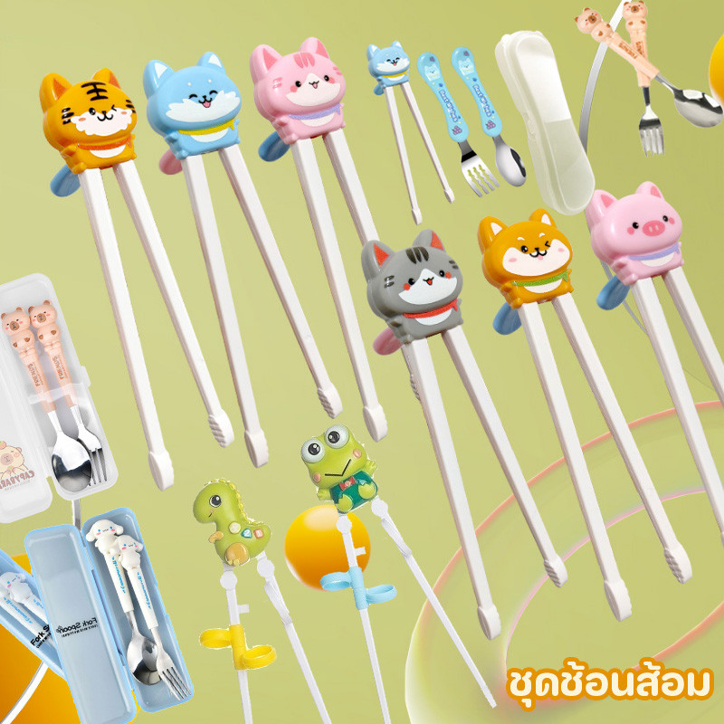 COD ตะเกียบฝึกอบรมการเรียนรู้สําหรับเด็ก ตะเกียบการ์ตูนกันลื่น ชุดช้อนและส้อม 2 ปี ตะเกียบฝึกเด็กทารก