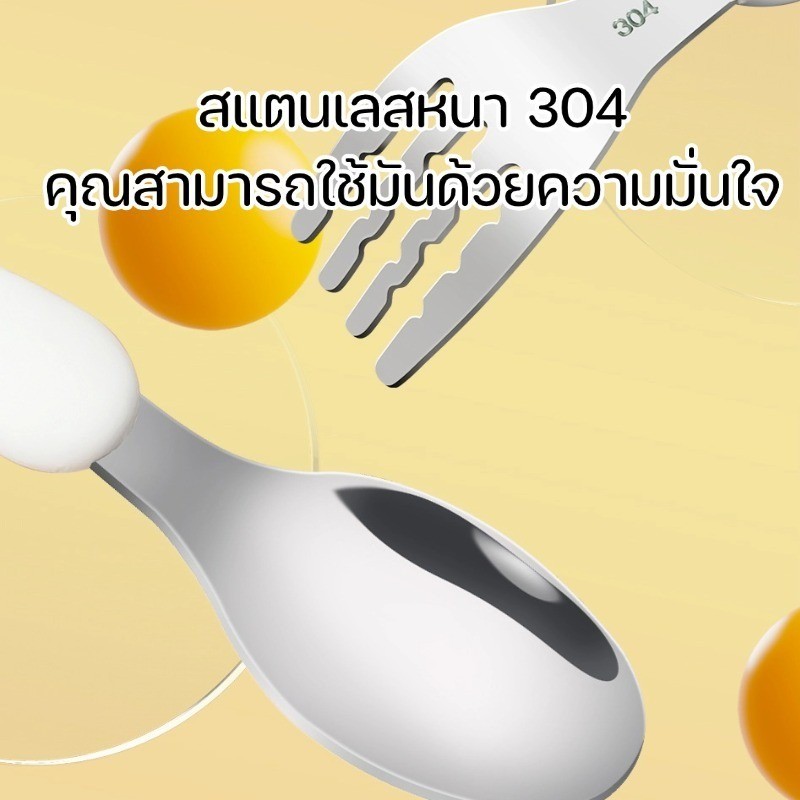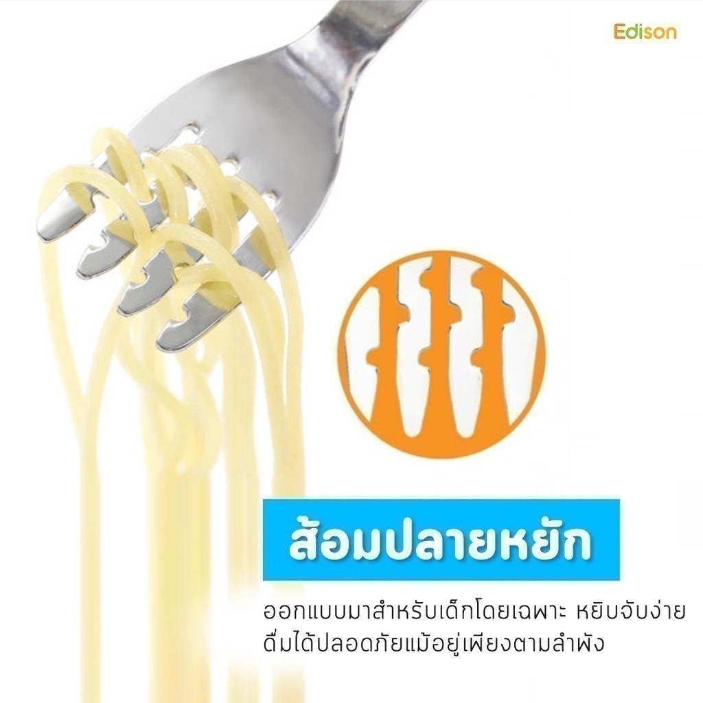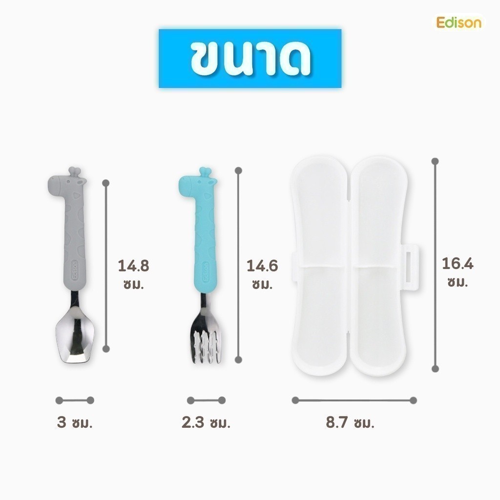 Edison ช้อนส้อมสแตนเลส เกรด304 ช้อนเด็กหัดทาน ช้อนส้อมเด็ก ช้อนส้อมสำหรับเด็ก ด้ามซิลิโคน พร้อมกล่องพกพา 12M+