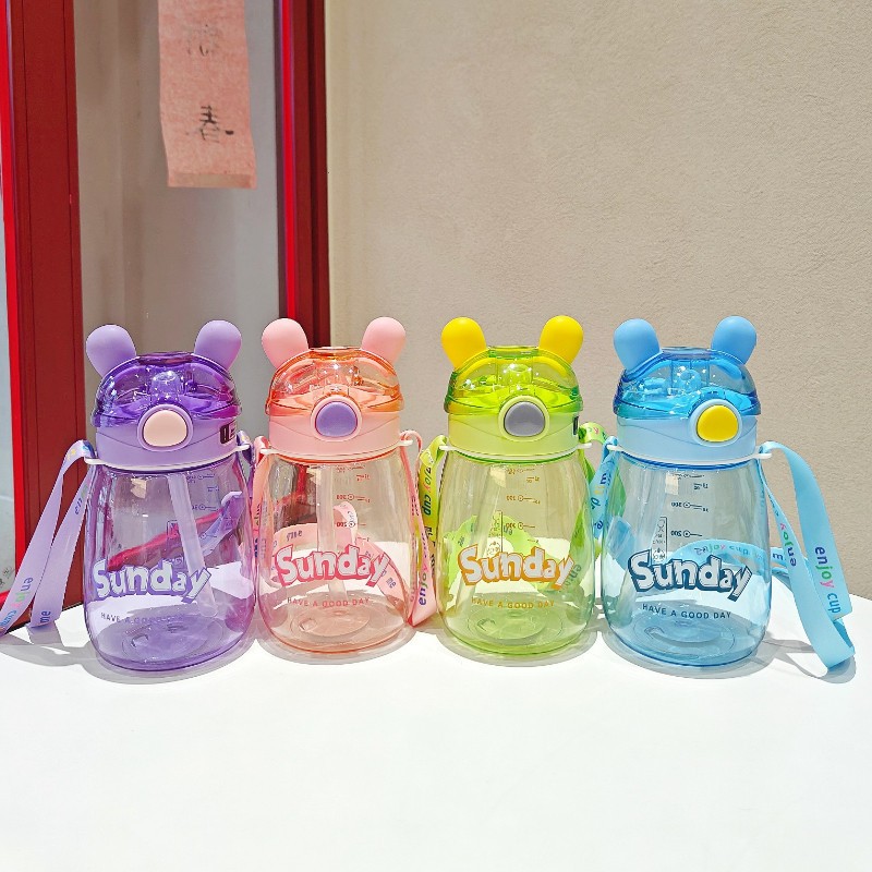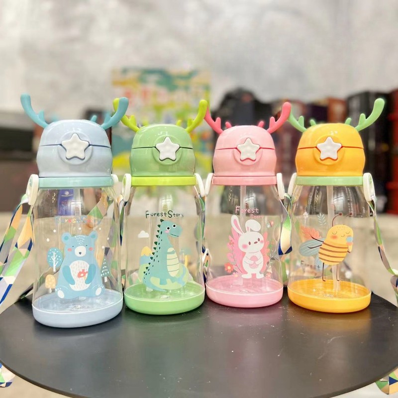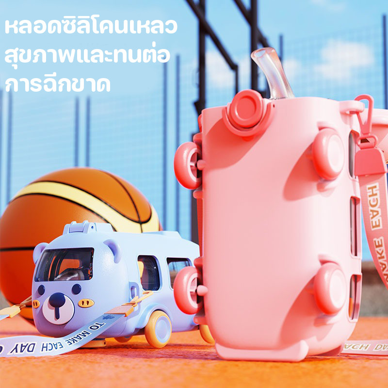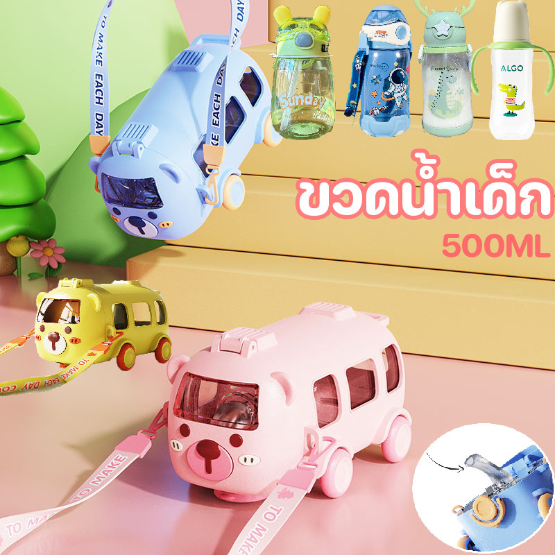 COD ขวดน้ำเด็ก 500ml รูปรถบัสน่ารัก กันรั่ว สายสะพายปรับได้ หมาะกับเด็ก 3-12 ขวบ