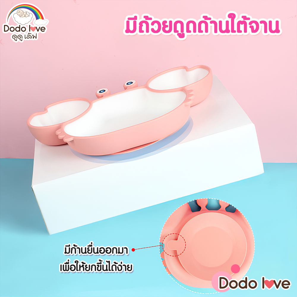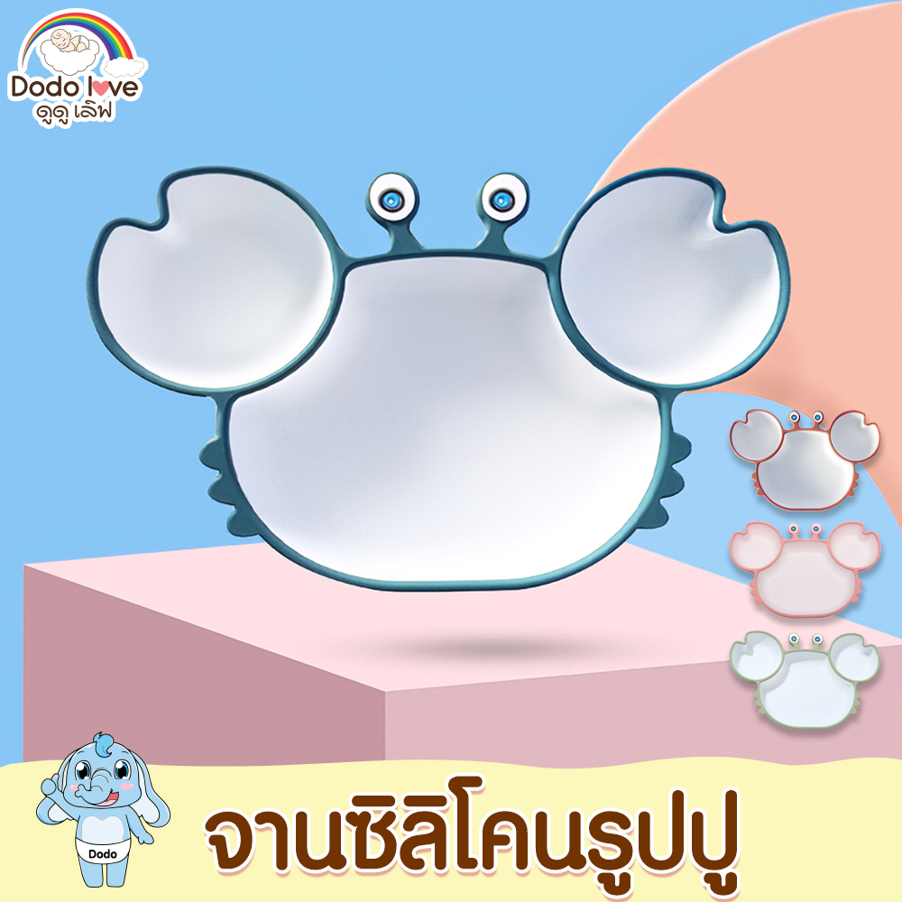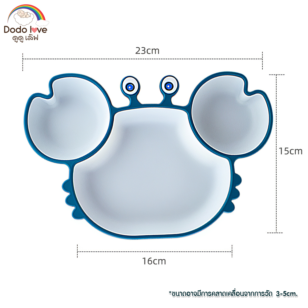 DODOLOVE ชามซิลิโคนดูดโต๊ะ แบ่ง 3 ช่อง ชามใส่อาหารสำหรับเด็ก ชาม รูปปู