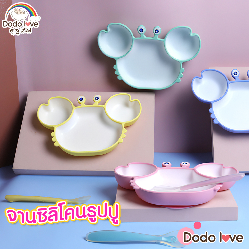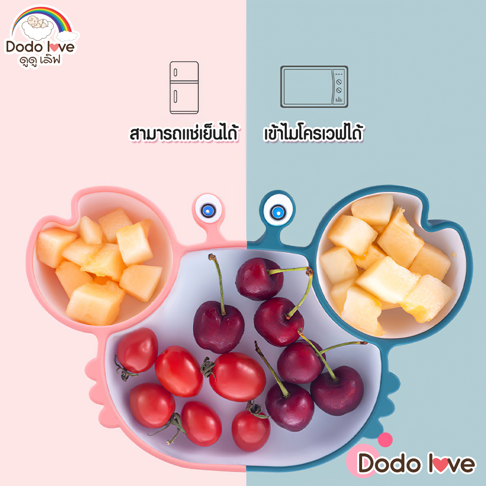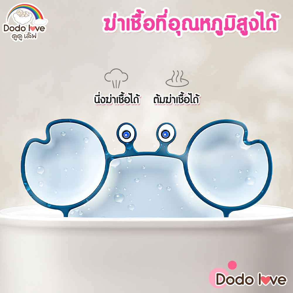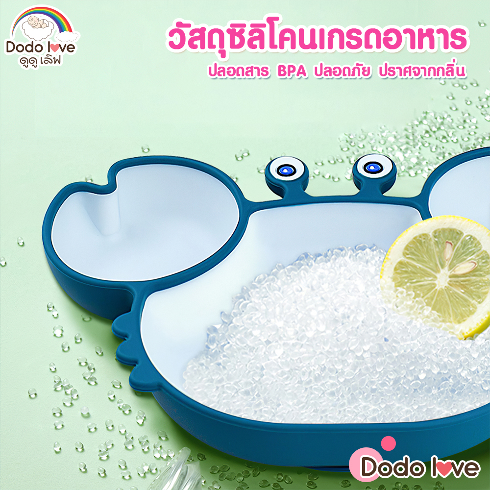 DODOLOVE ชามซิลิโคนดูดโต๊ะ แบ่ง 3 ช่อง ชามใส่อาหารสำหรับเด็ก ชาม รูปปู