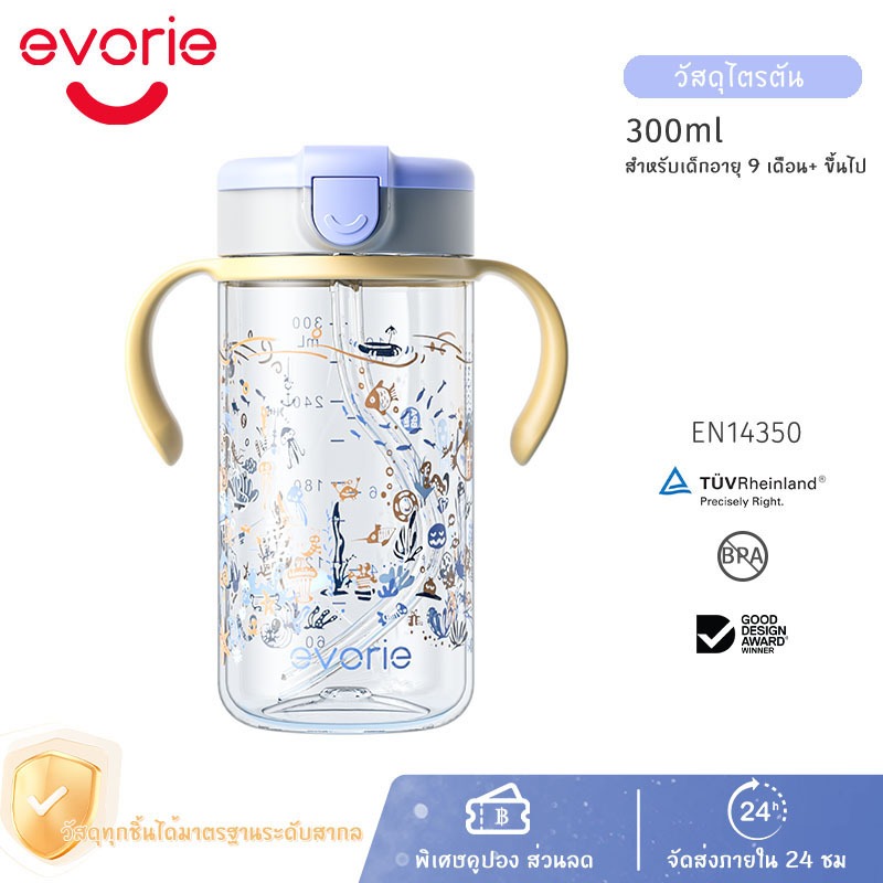 Evorie Trian กระติกน้ำ เหมาะสำหรับ 1-3 ปี แก้วน้ำเด็ก ขวดน้ำเด็ก กันสำลัก แก้วหลอดดูด -Under the Sea (YP) 300ml