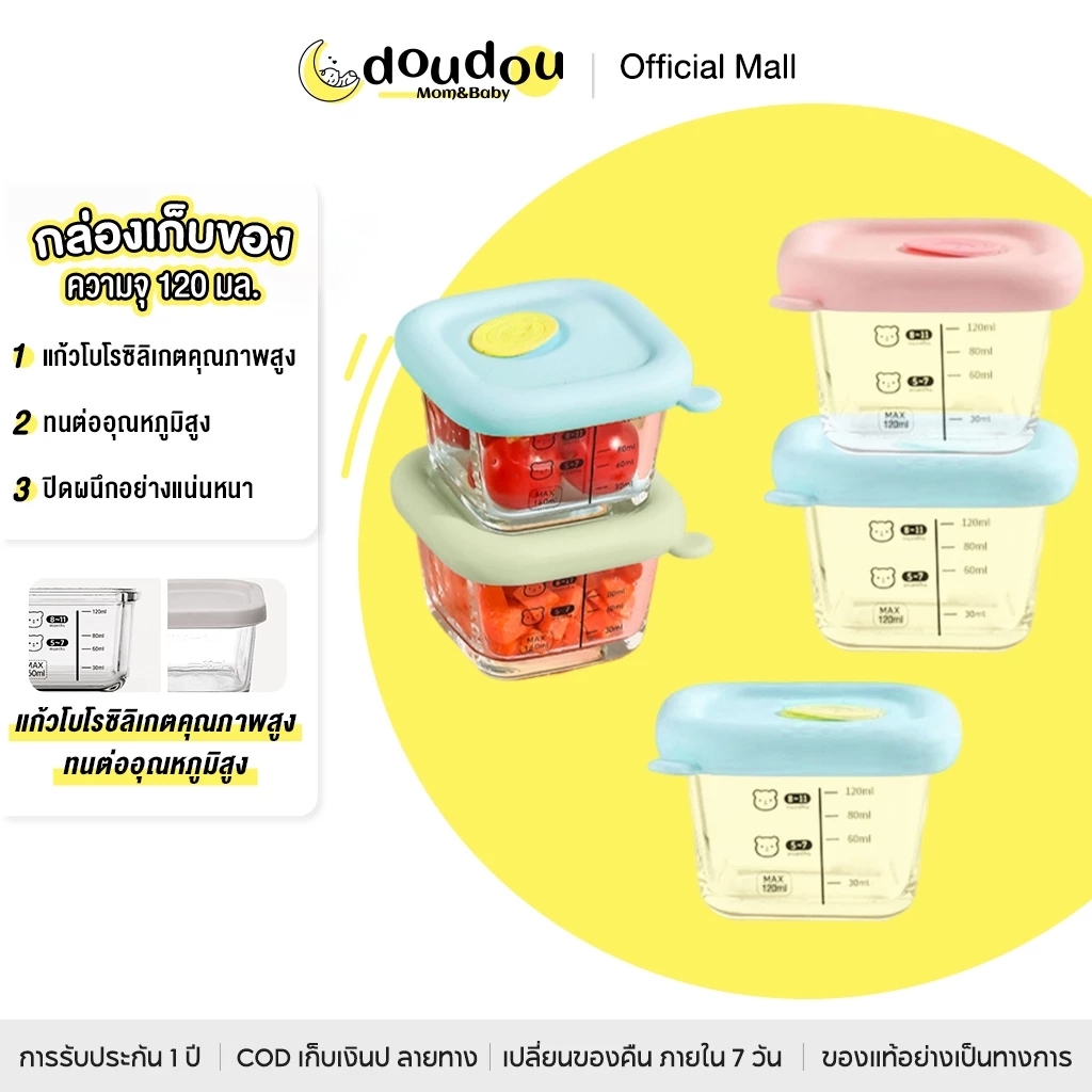 doudou กล่องเก็บอาหาร แบบแก้ว สำหรับทารก 3 ชิ้น 120ml เก็บได้ทั้งอาหารเย็น และอาหารร้อน ผนึกกันรั่ว มีรูระบายอากาศ