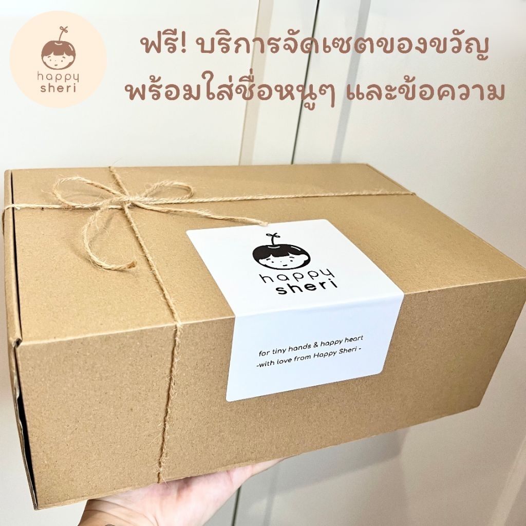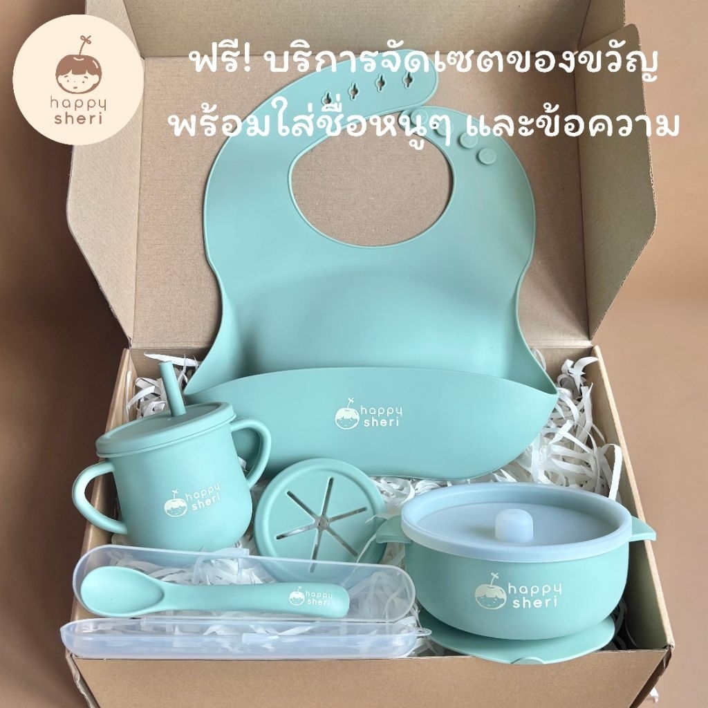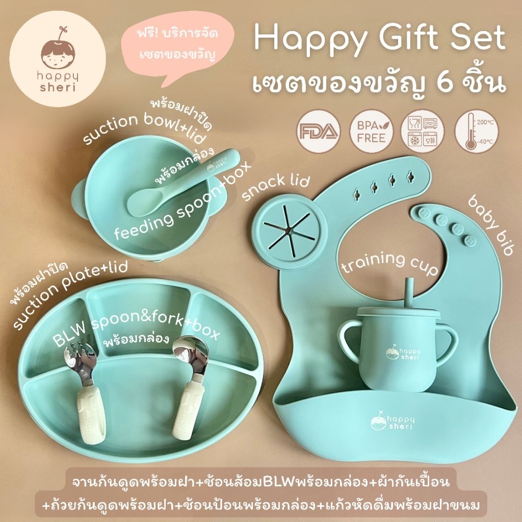 Happy Sheri เซตของขวัญเด็ก 6 ชิ้น | Happy Gift Set ชุดทานอาหารเด็กซิลิโคน จาน+ช้อนส้อม+ถ้วย+ช้อนป้อน+แก้ว+กันเปื้อน
