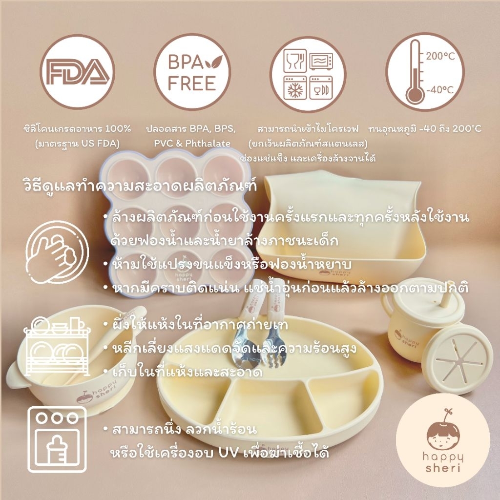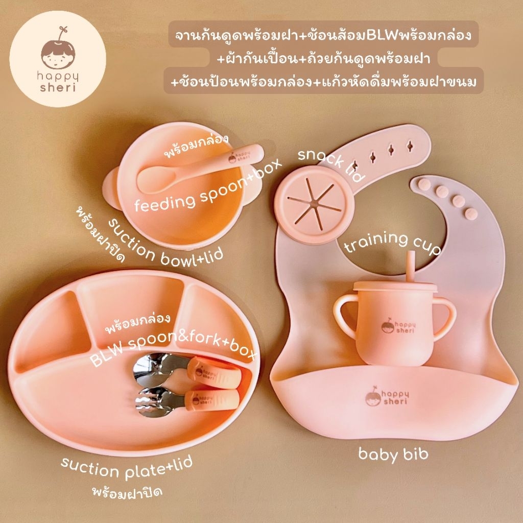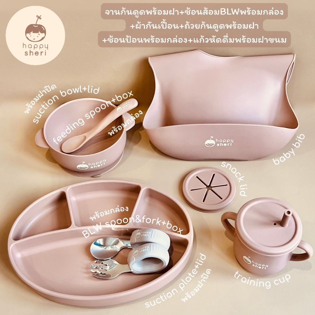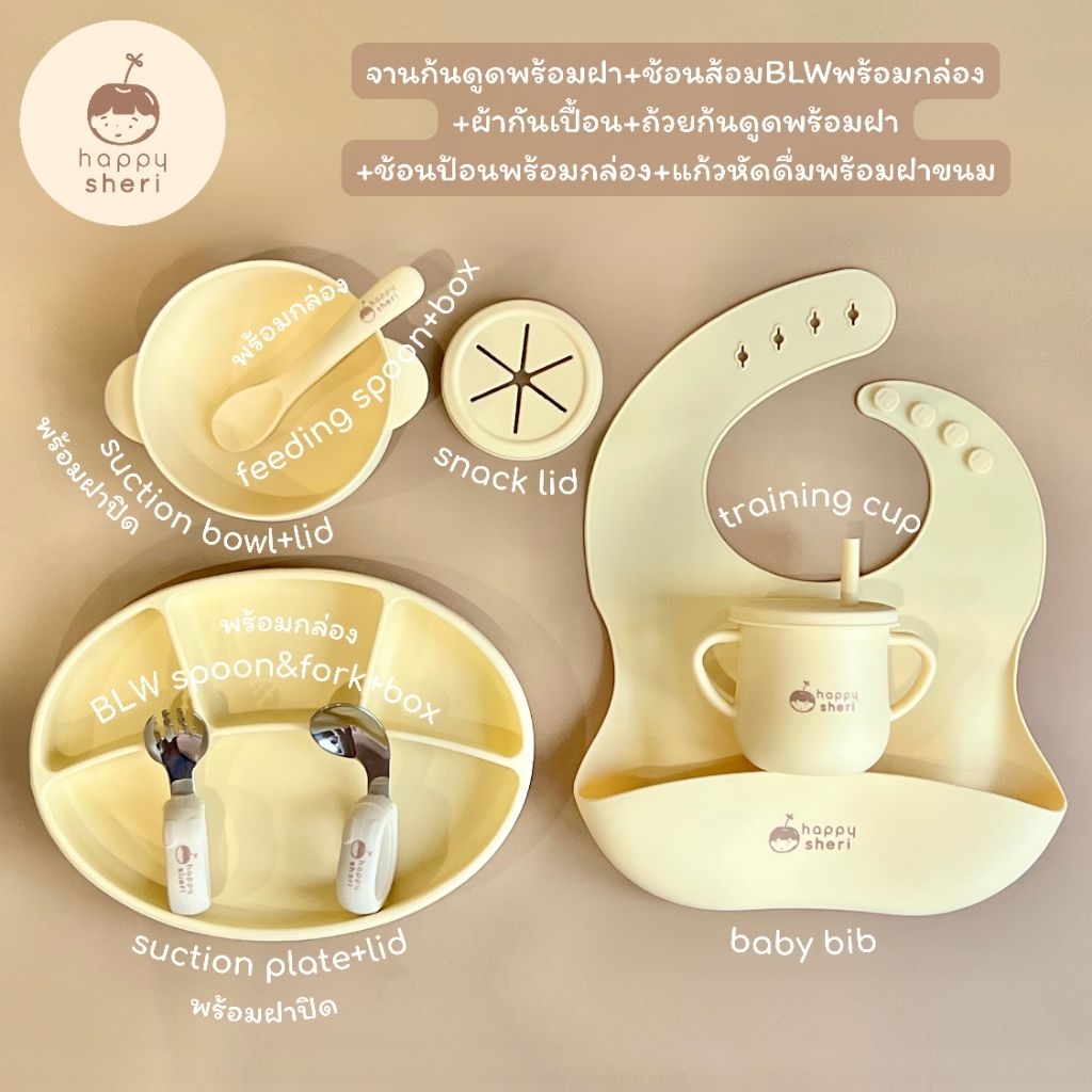 Happy Sheri เซตของขวัญเด็ก 6 ชิ้น | Happy Gift Set ชุดทานอาหารเด็กซิลิโคน จาน+ช้อนส้อม+ถ้วย+ช้อนป้อน+แก้ว+กันเปื้อน