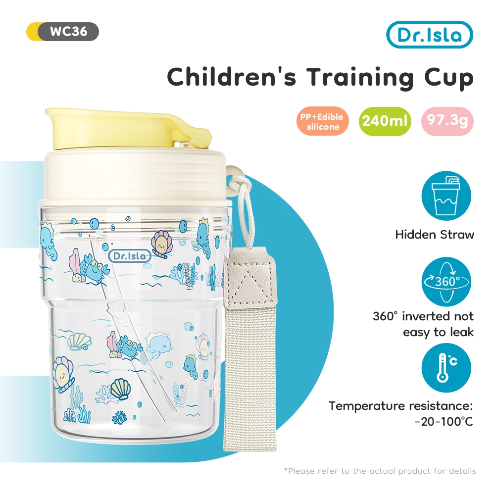 Dr.isla แก้วน้ำเด็ก สำหรับเด็กอายุ 1-6 ปี พร้อมหลอดซิลิโคน ป้องกันการสำลัก ป้องกันการรั่วซึม ปราศจาก BPA WC36