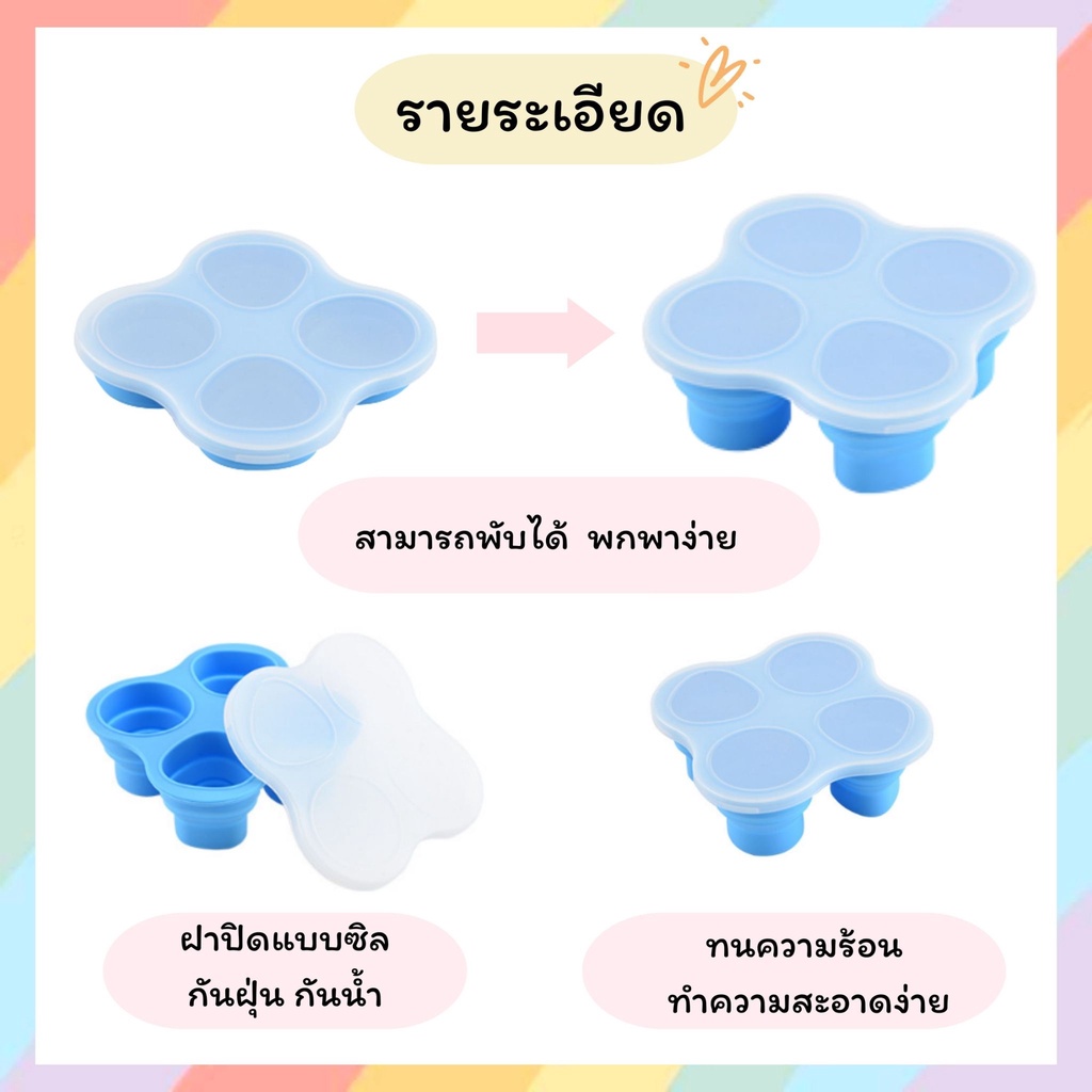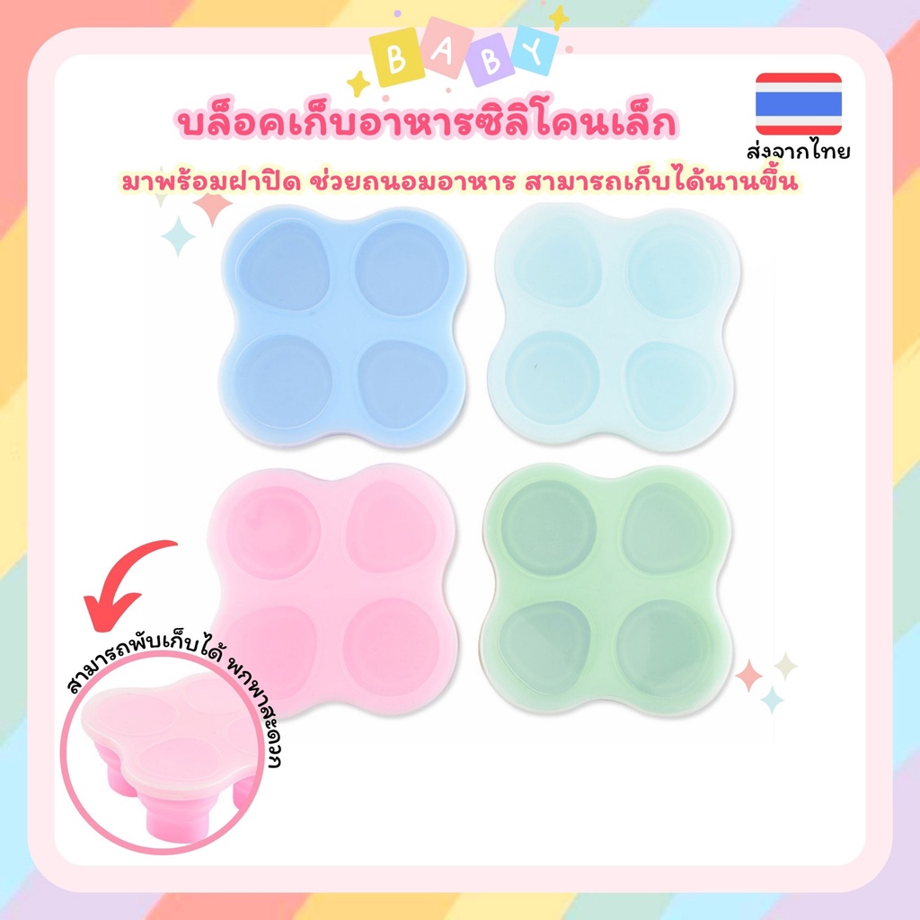 บล็อคแช่อาหาร เก็บอาหาร ซิลิโคน ขนาด 4 ช่อง พร้อมฝาปิด
