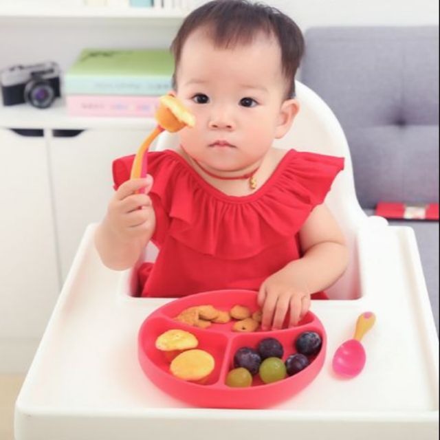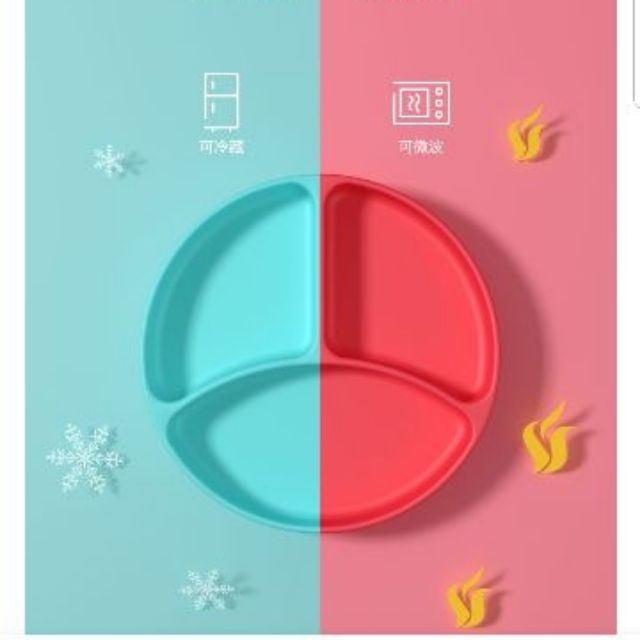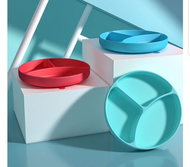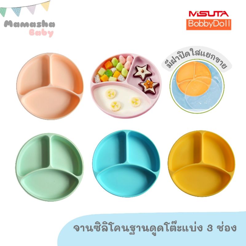 พร้อมส่ง Bobbydoll/Khinnagoo จานซิลิโคนก้นดูด จานซิลิโคนดูดโต๊ะ แบ่ง 3 ช่อง มีฝาปิดแยกขาย