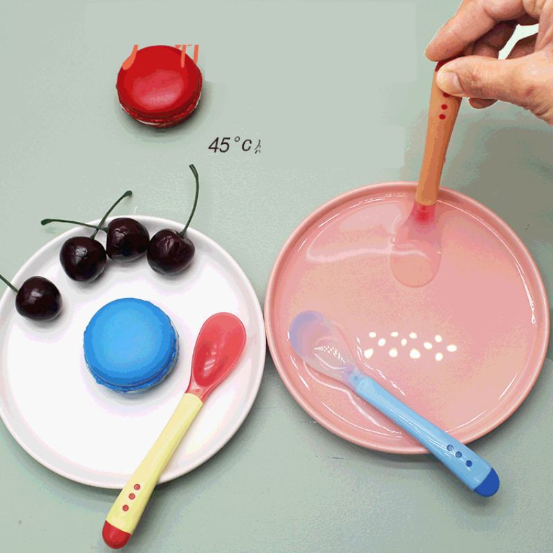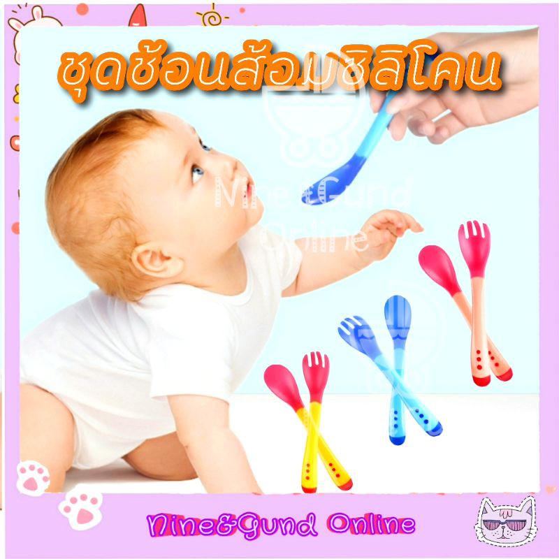 ชุดช้อนส้อมซิลิโคนเปลี่ยนสีตามอุณหภูมิ สำหรับเด็กทารก และเด็กอ่อน ถูกที่สุด