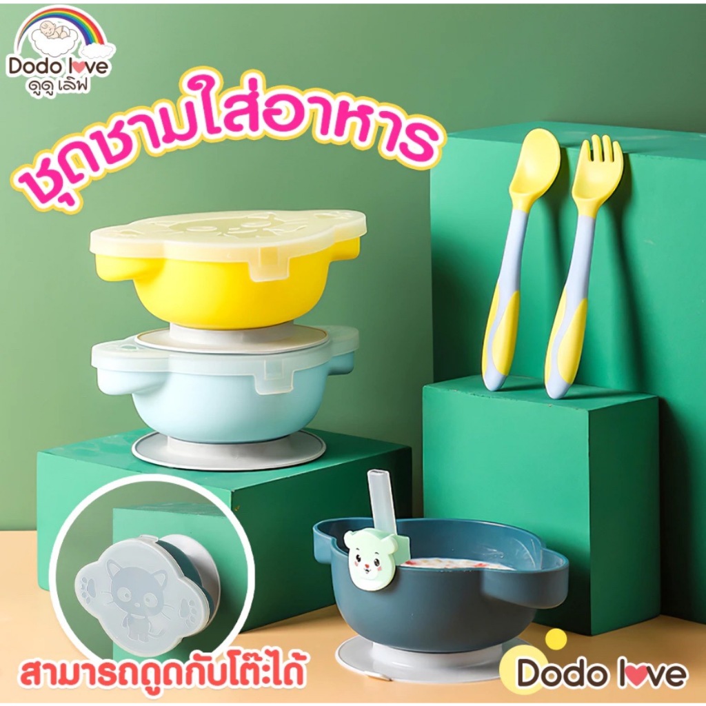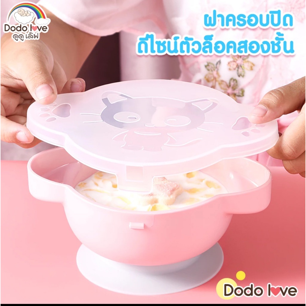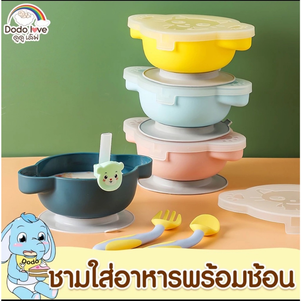 ชามก้นดูดพร้อมฝาปิด ชุดชามช้อนก้นดูด ชามข้าวเด็ก
