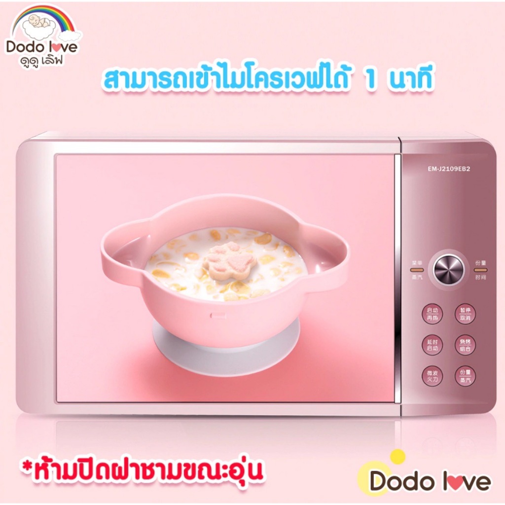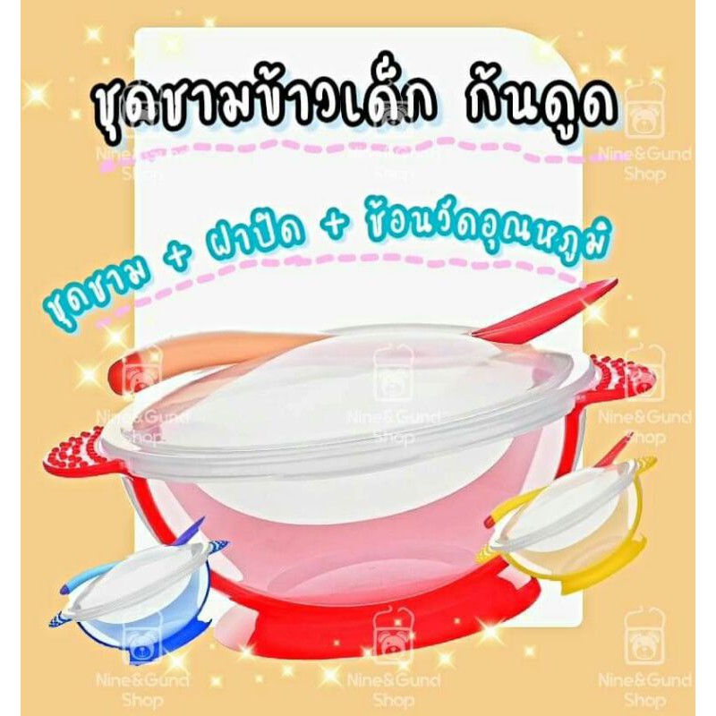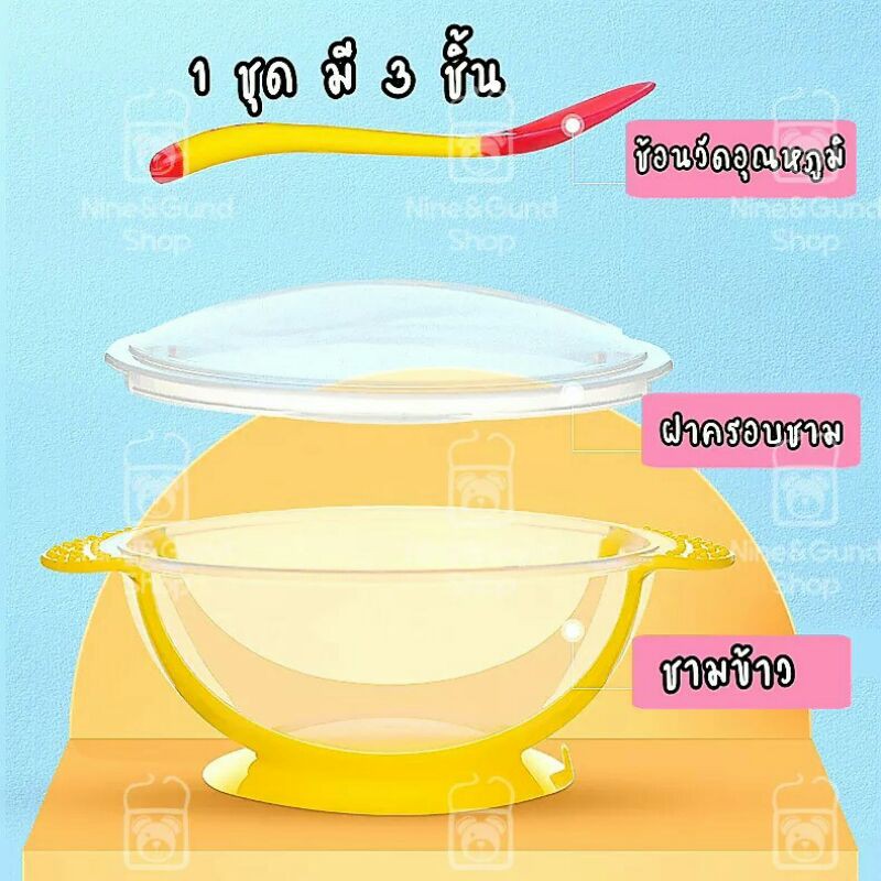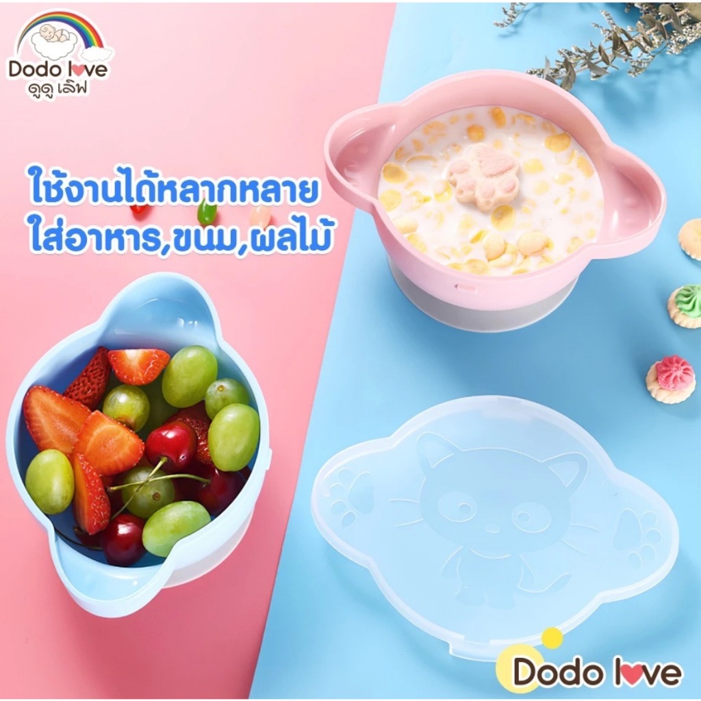 ชามก้นดูดพร้อมฝาปิด ชุดชามช้อนก้นดูด ชามข้าวเด็ก